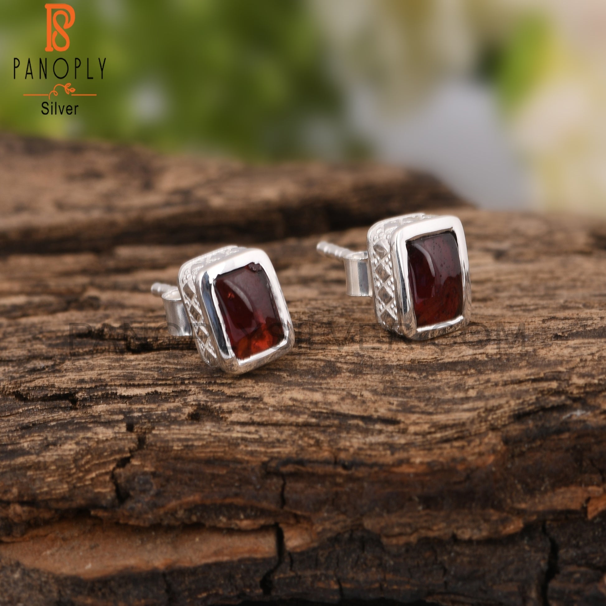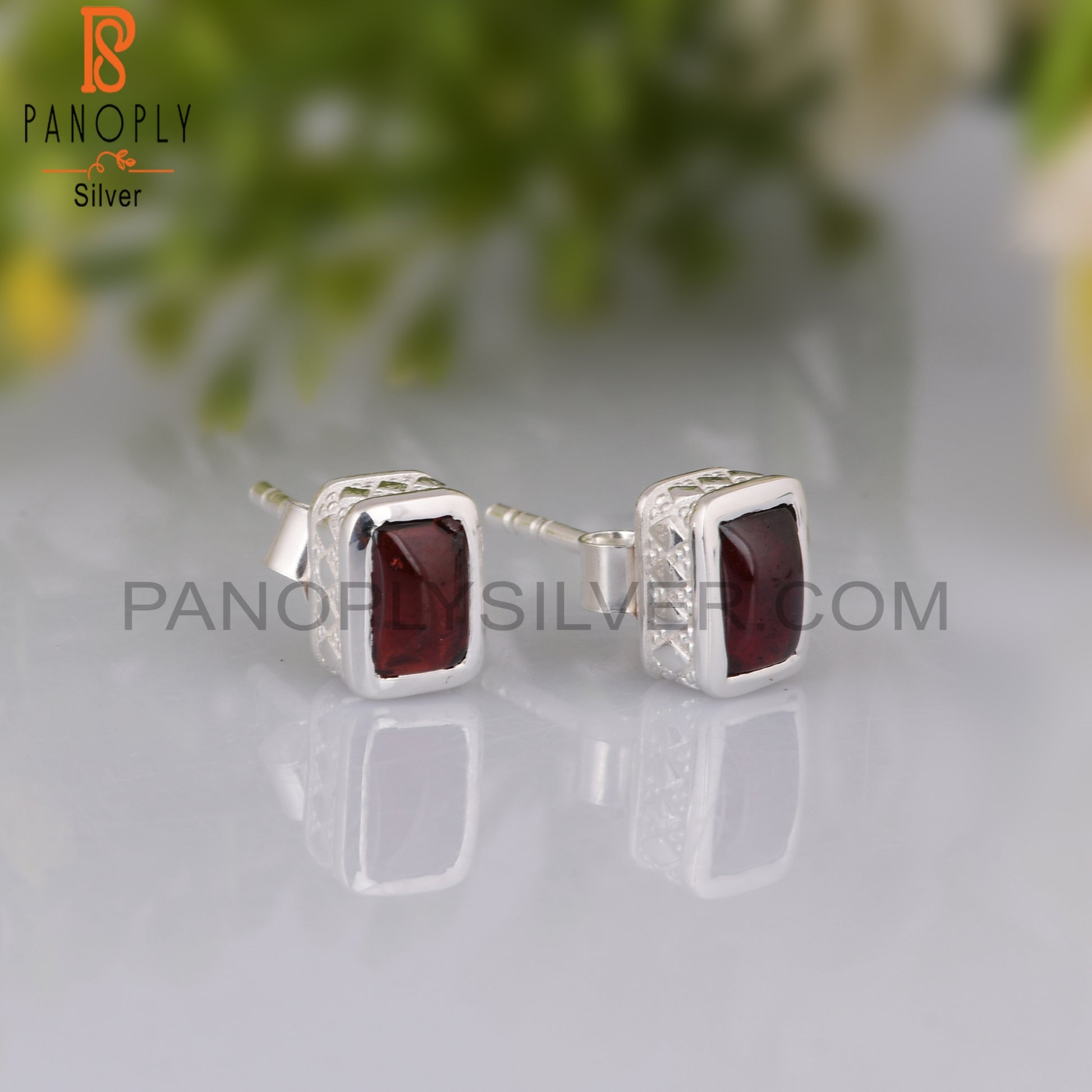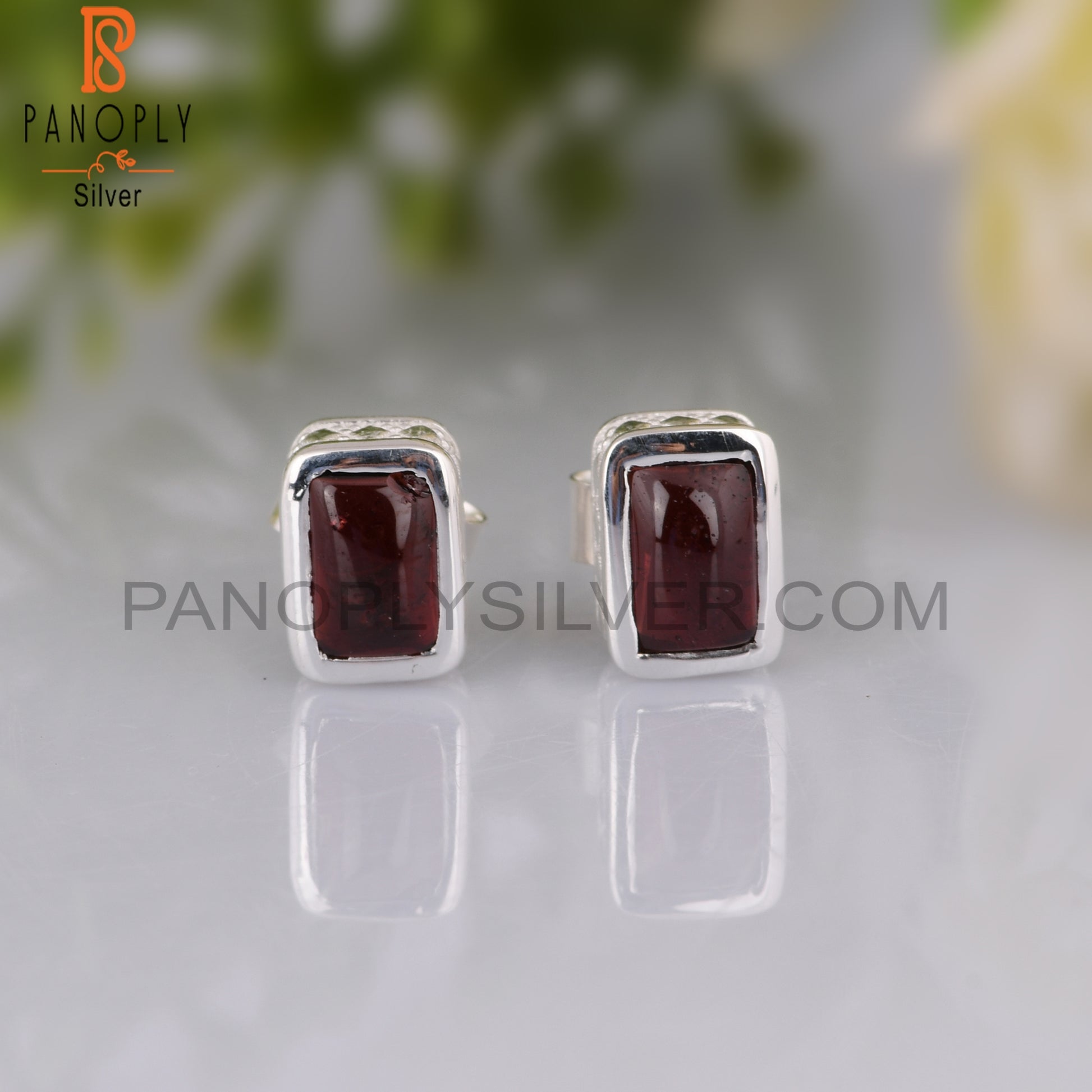Garnet Beguette Shape 925 Sterling Silver Earrings