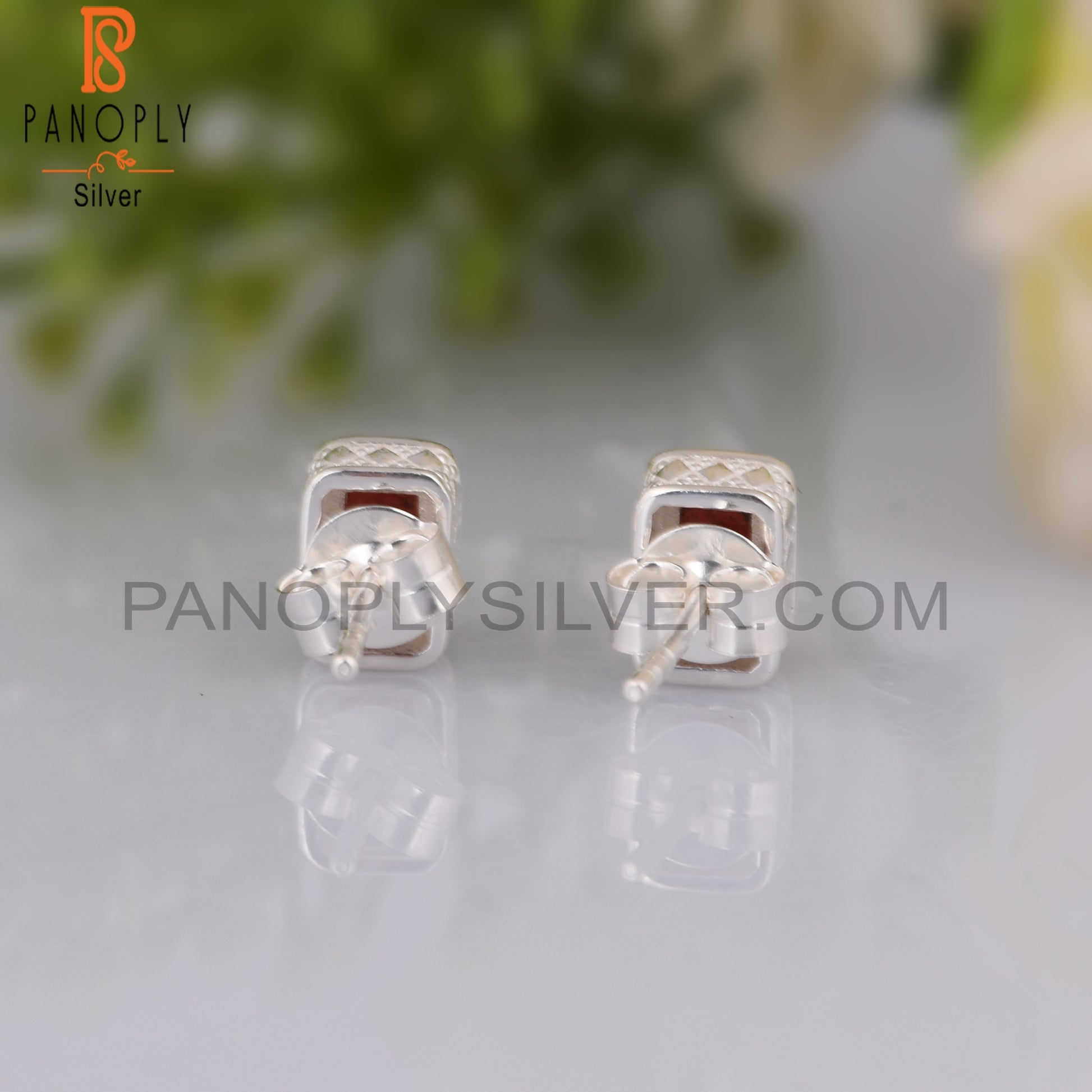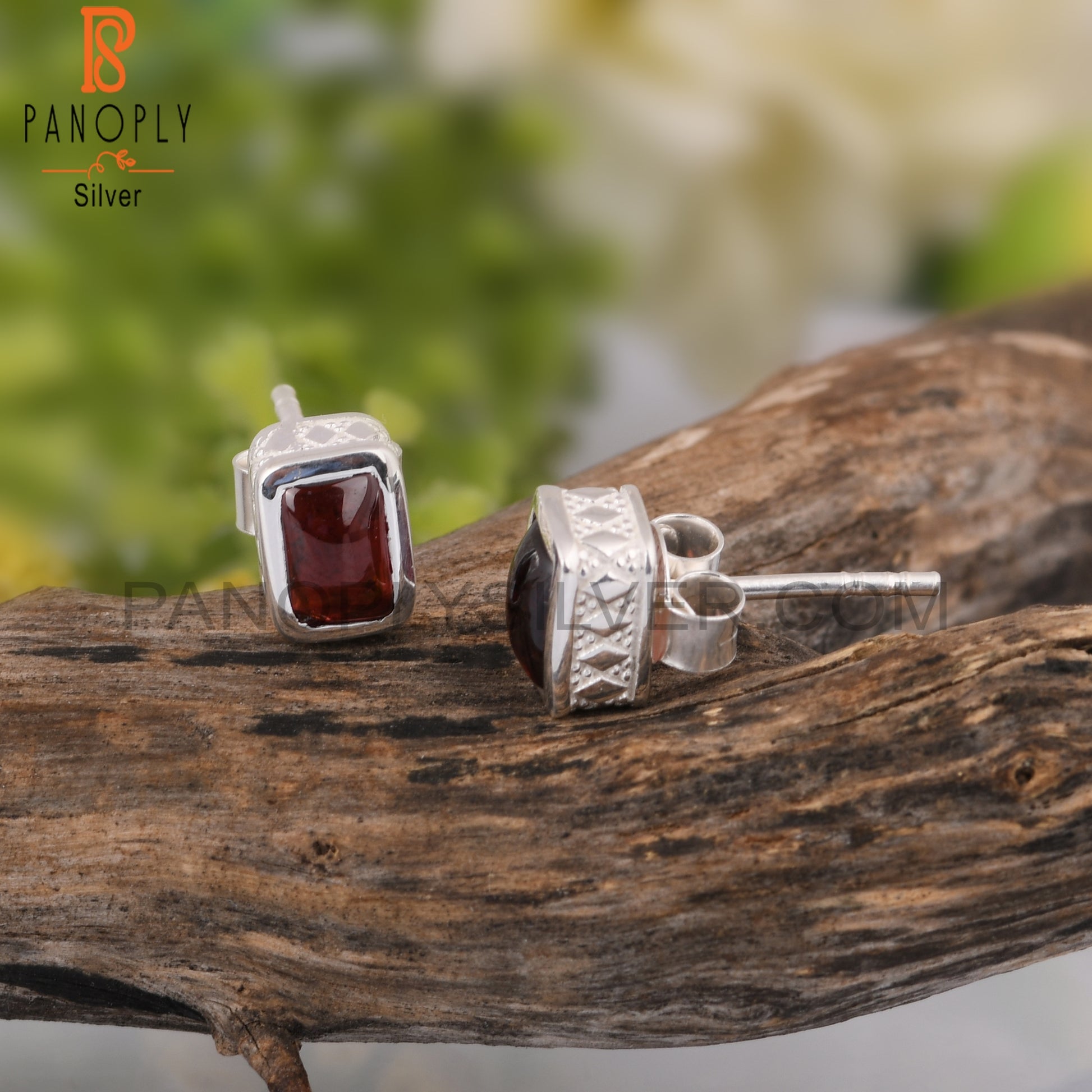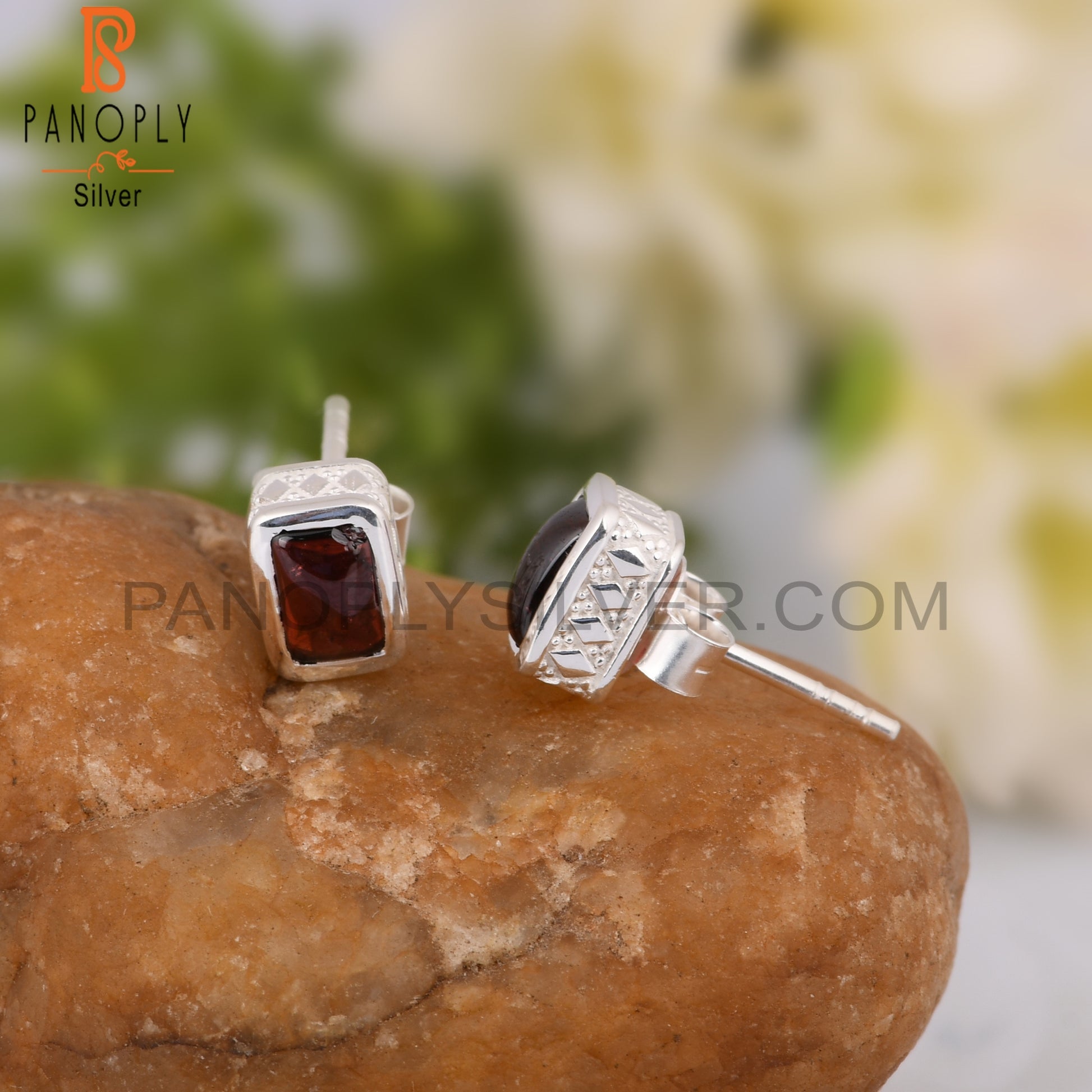 Garnet Beguette Shape 925 Sterling Silver Earrings