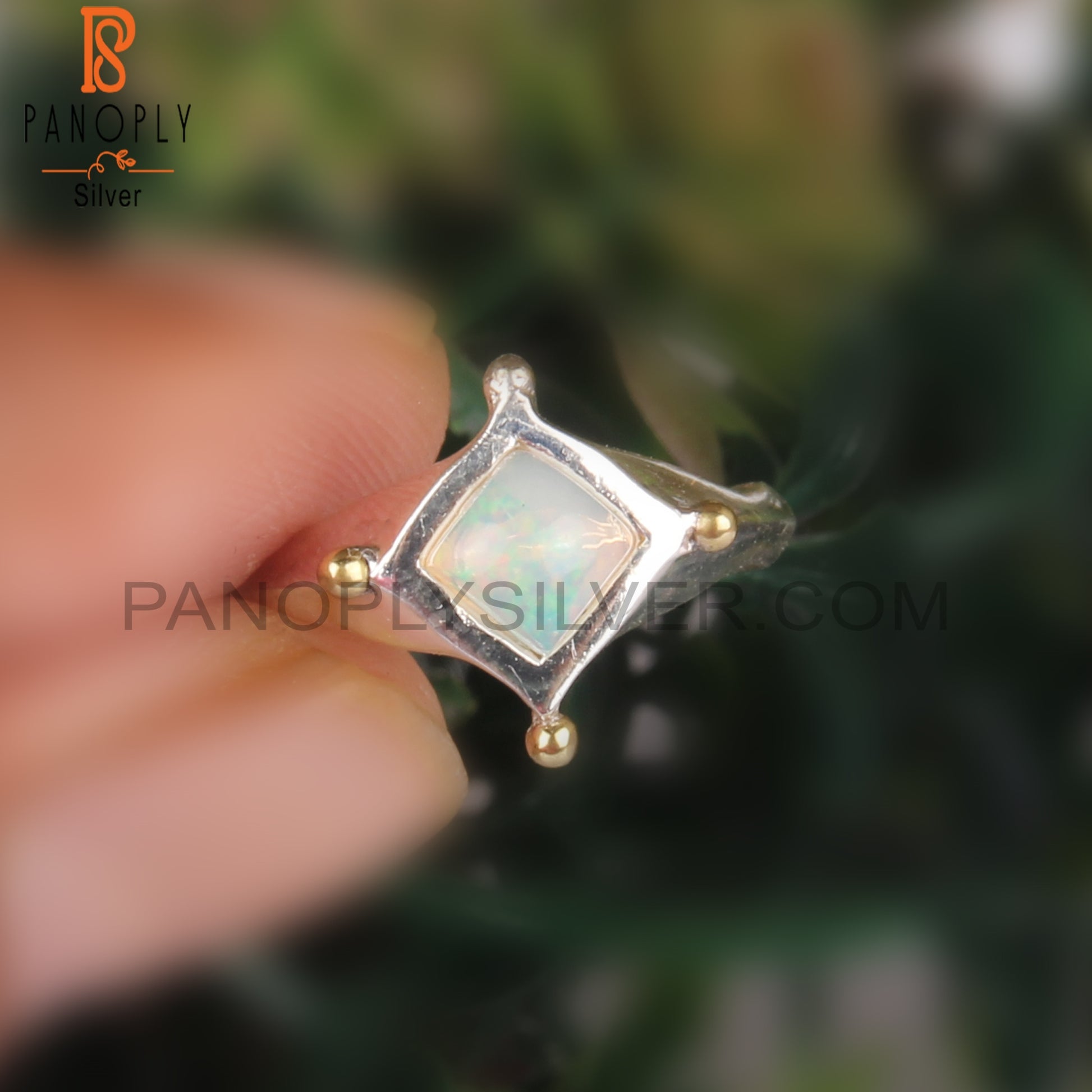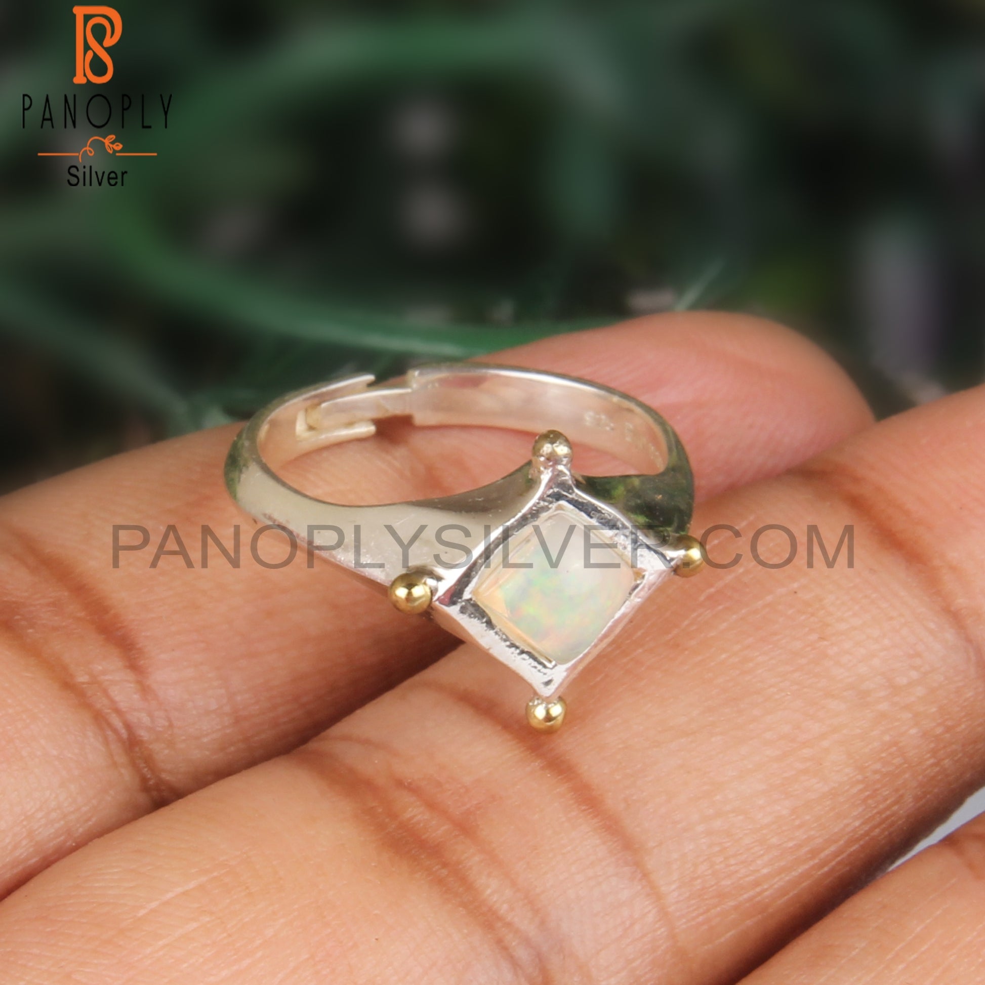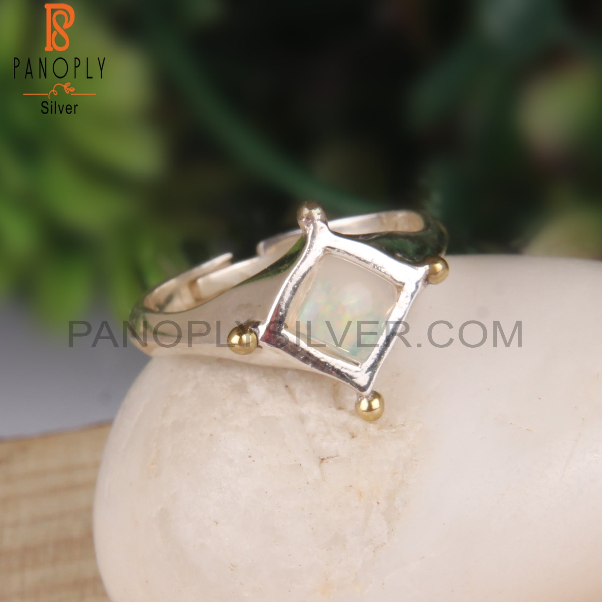 Ethiopian Opal Square Shape 925 Sterling Silver Ring