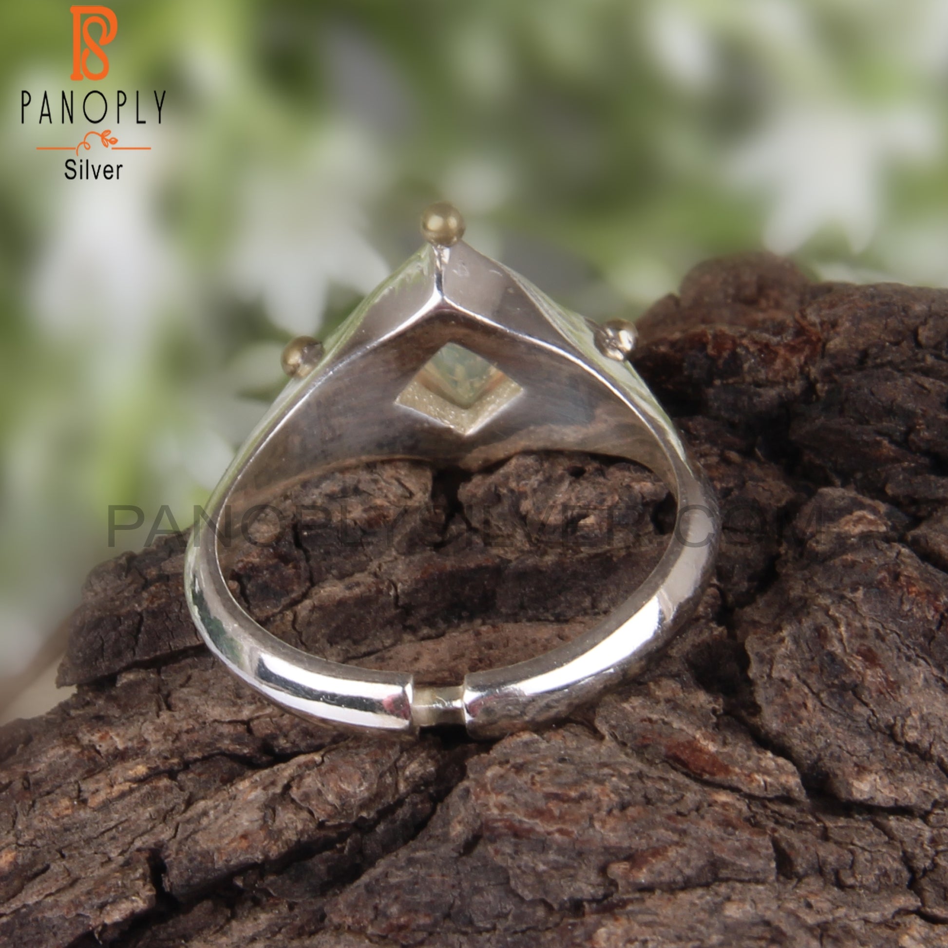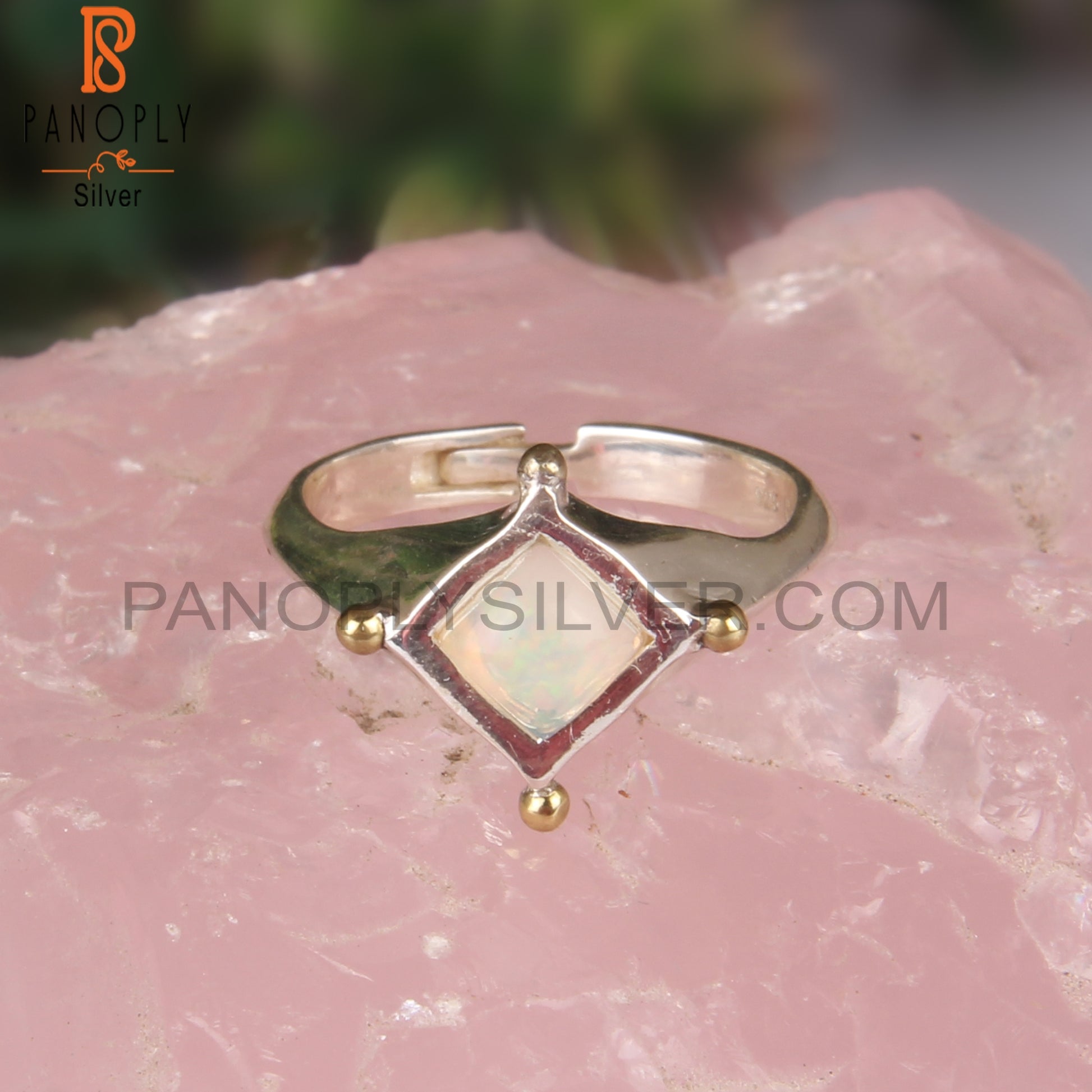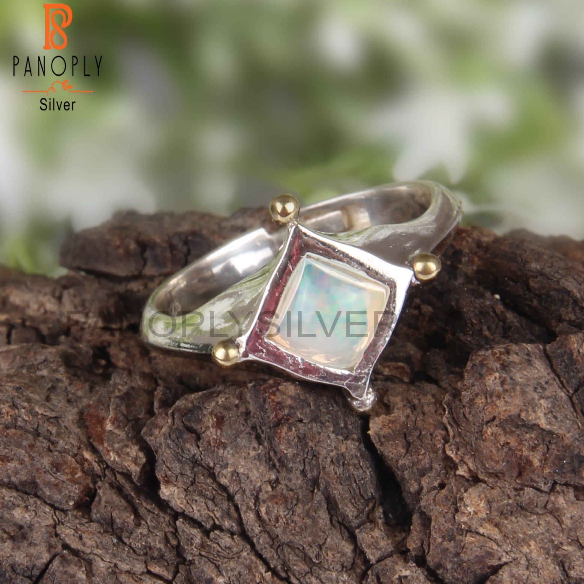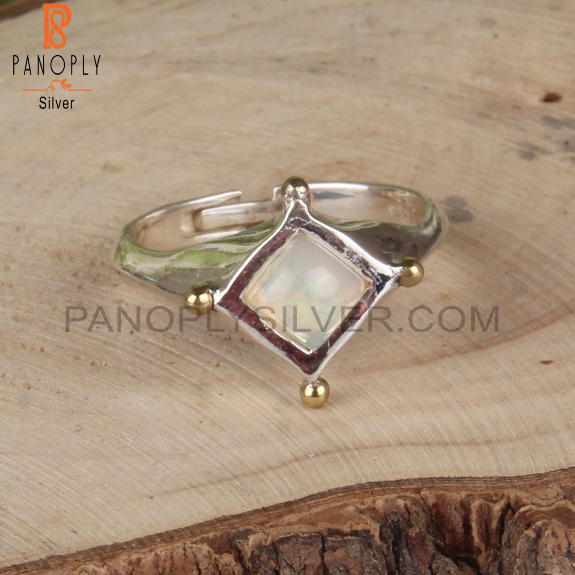 Ethiopian Opal Square Shape 925 Sterling Silver Ring