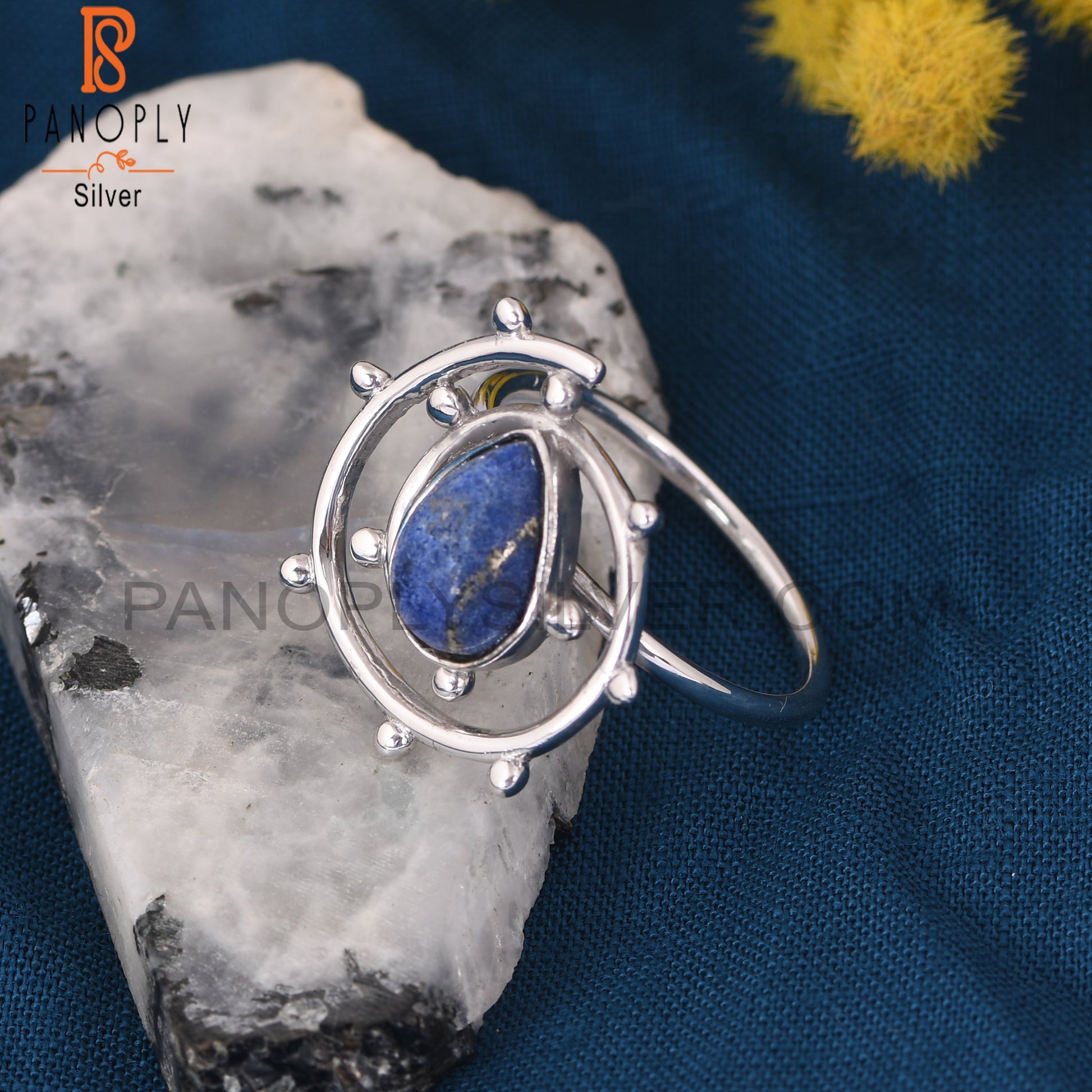 Lapis Lazuli 925 Silver Unique White Rhodium Ring