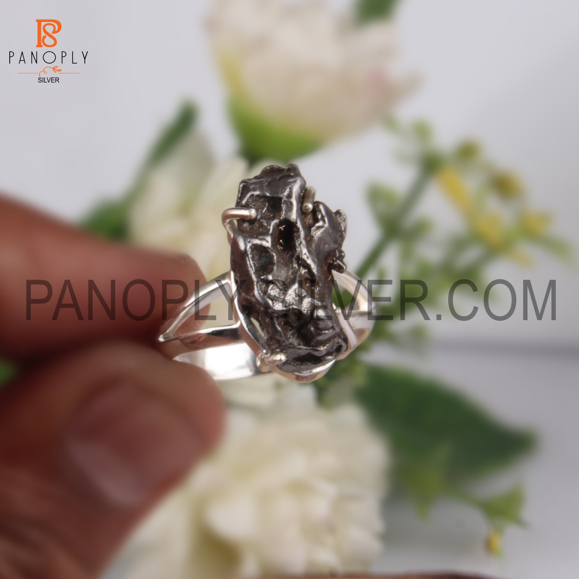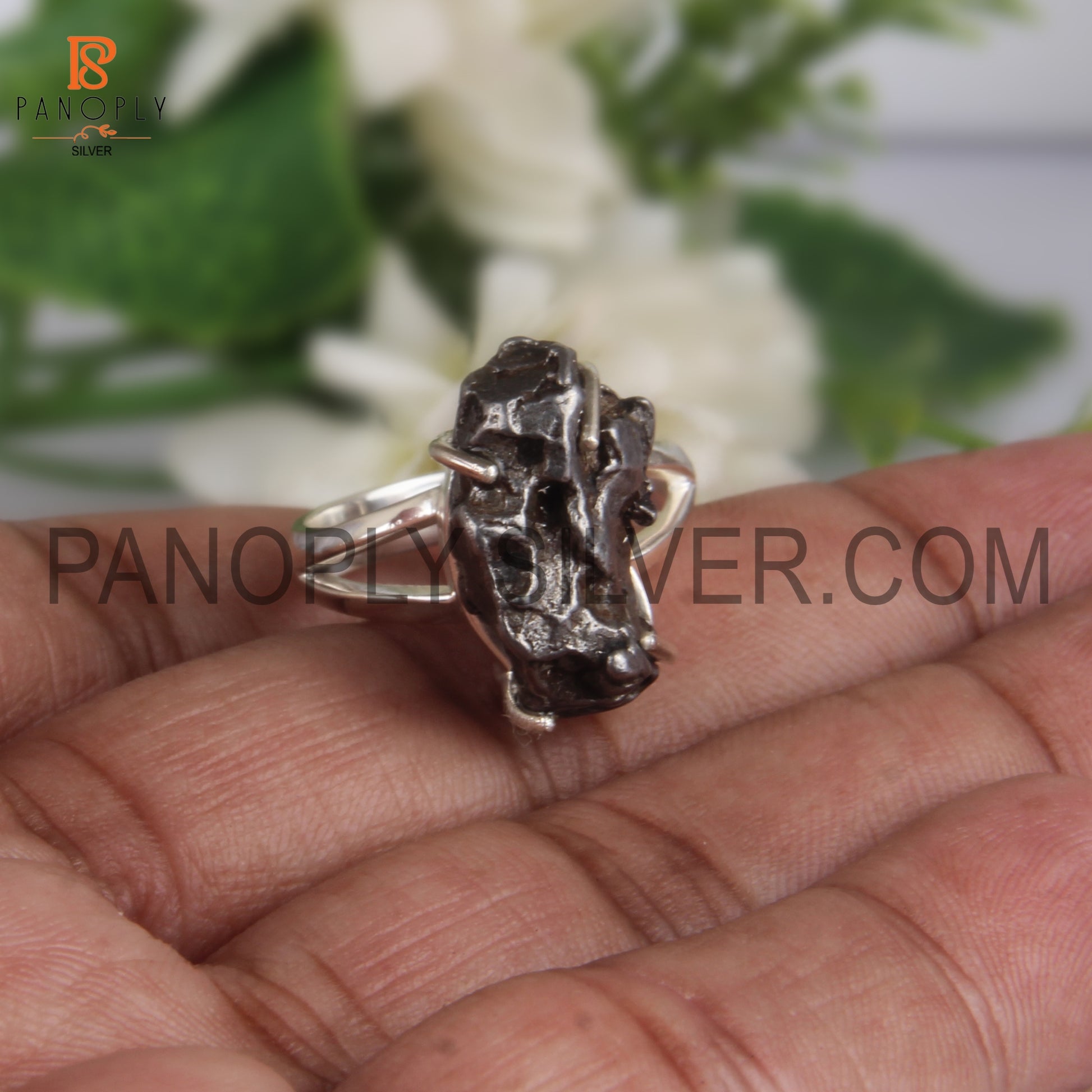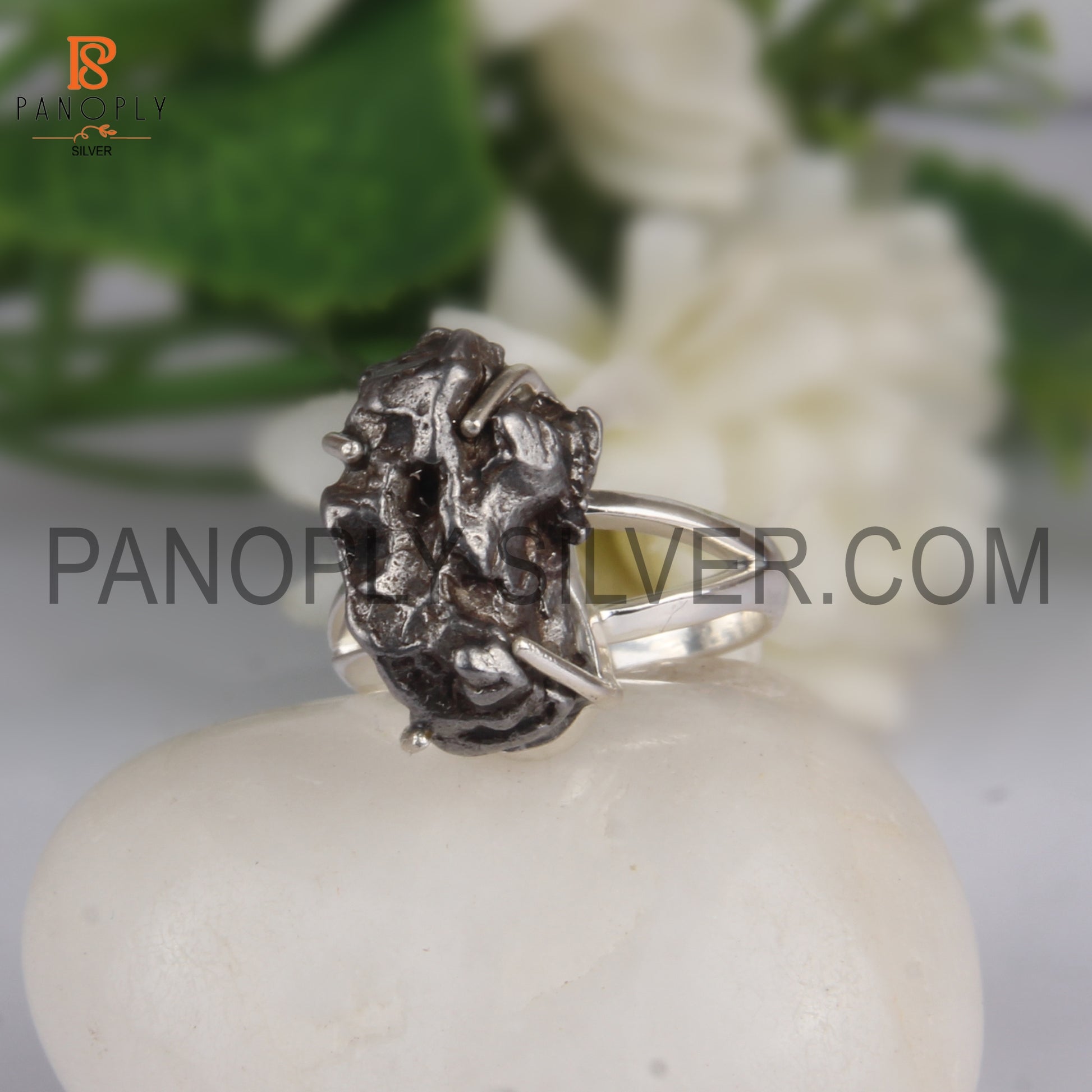 Meteorite Prong Set 925 Quality Silver Rings For Women