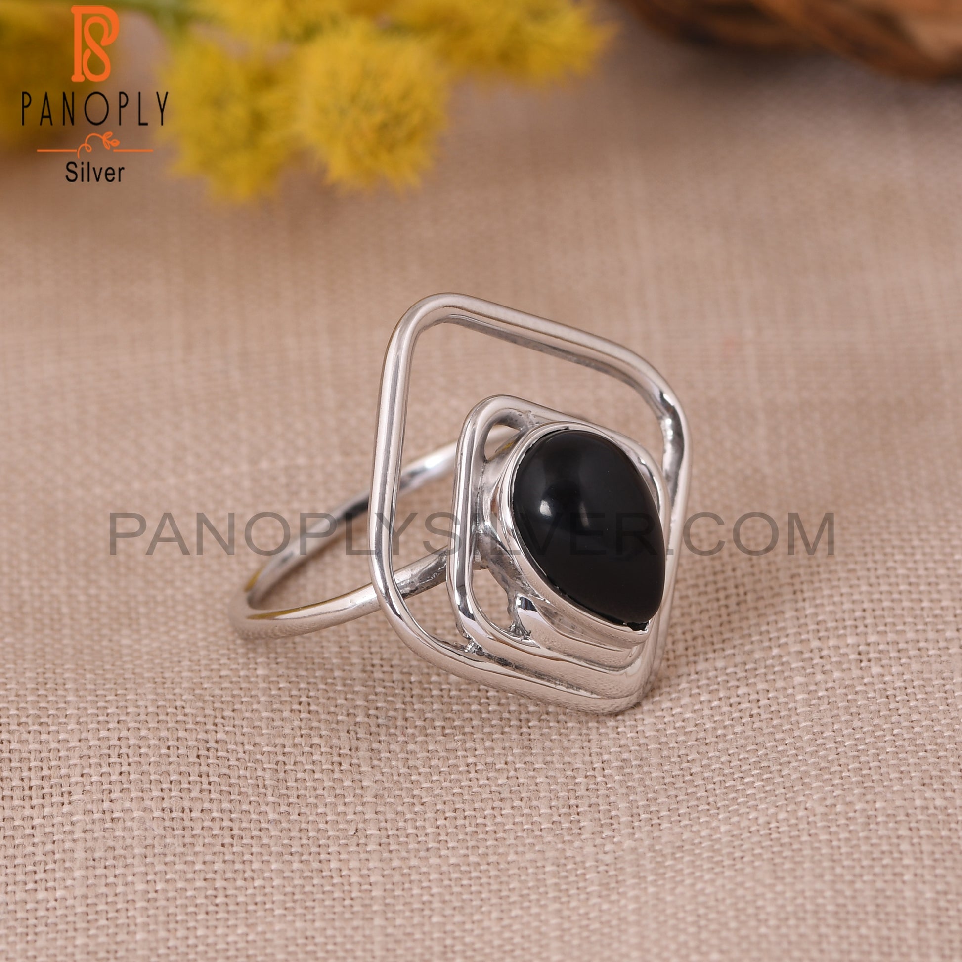Natural Black Onyx 925 Sterling Silver Square Rings