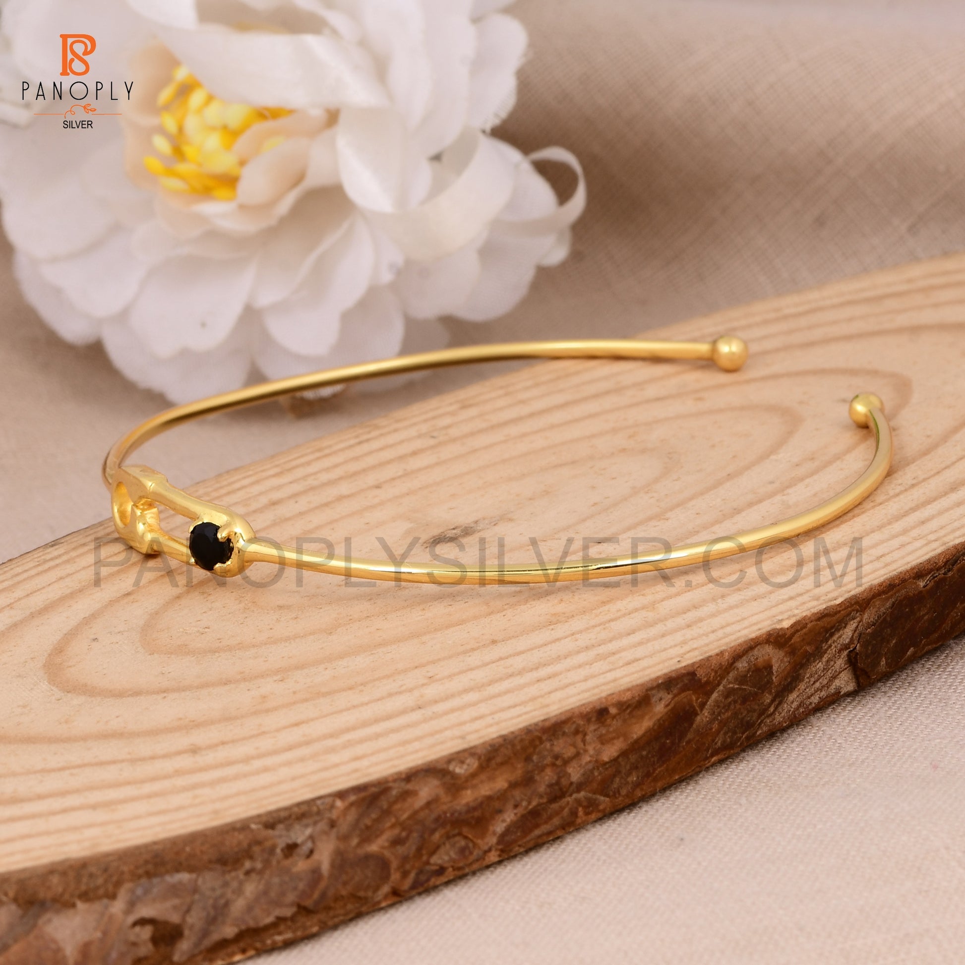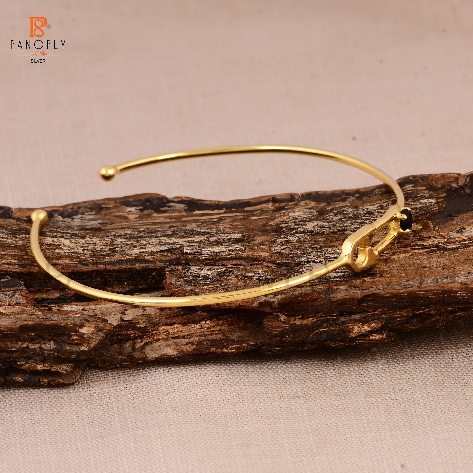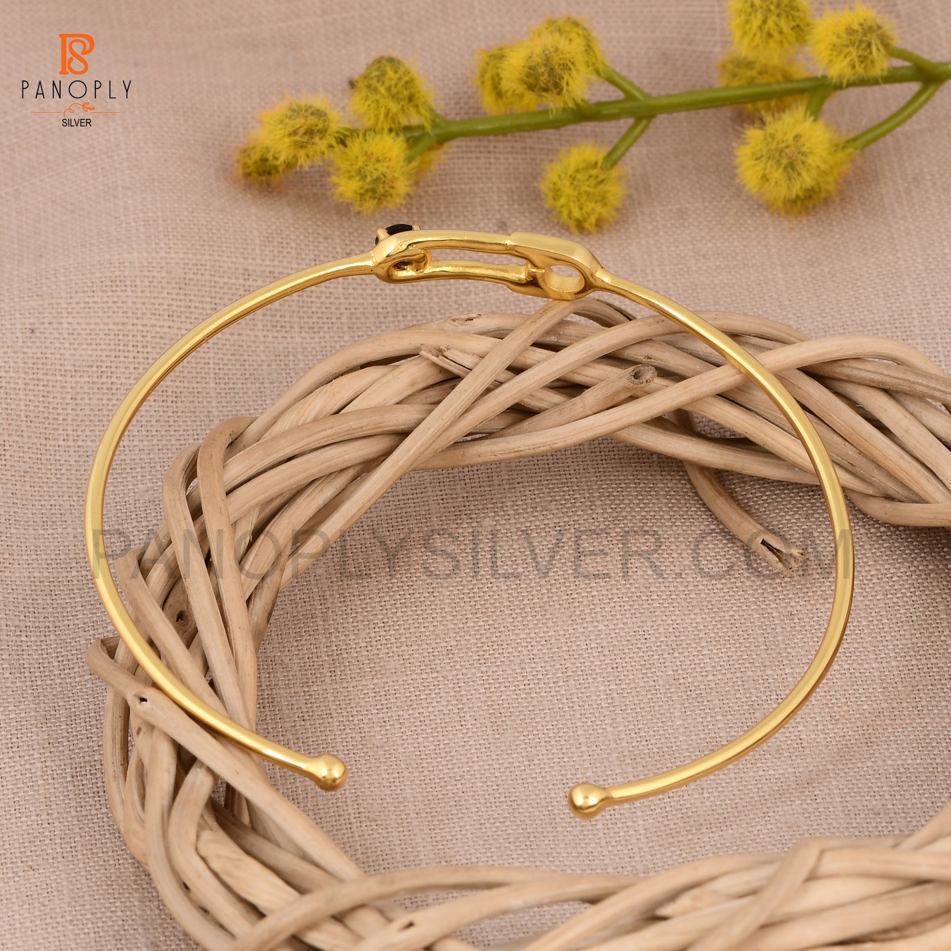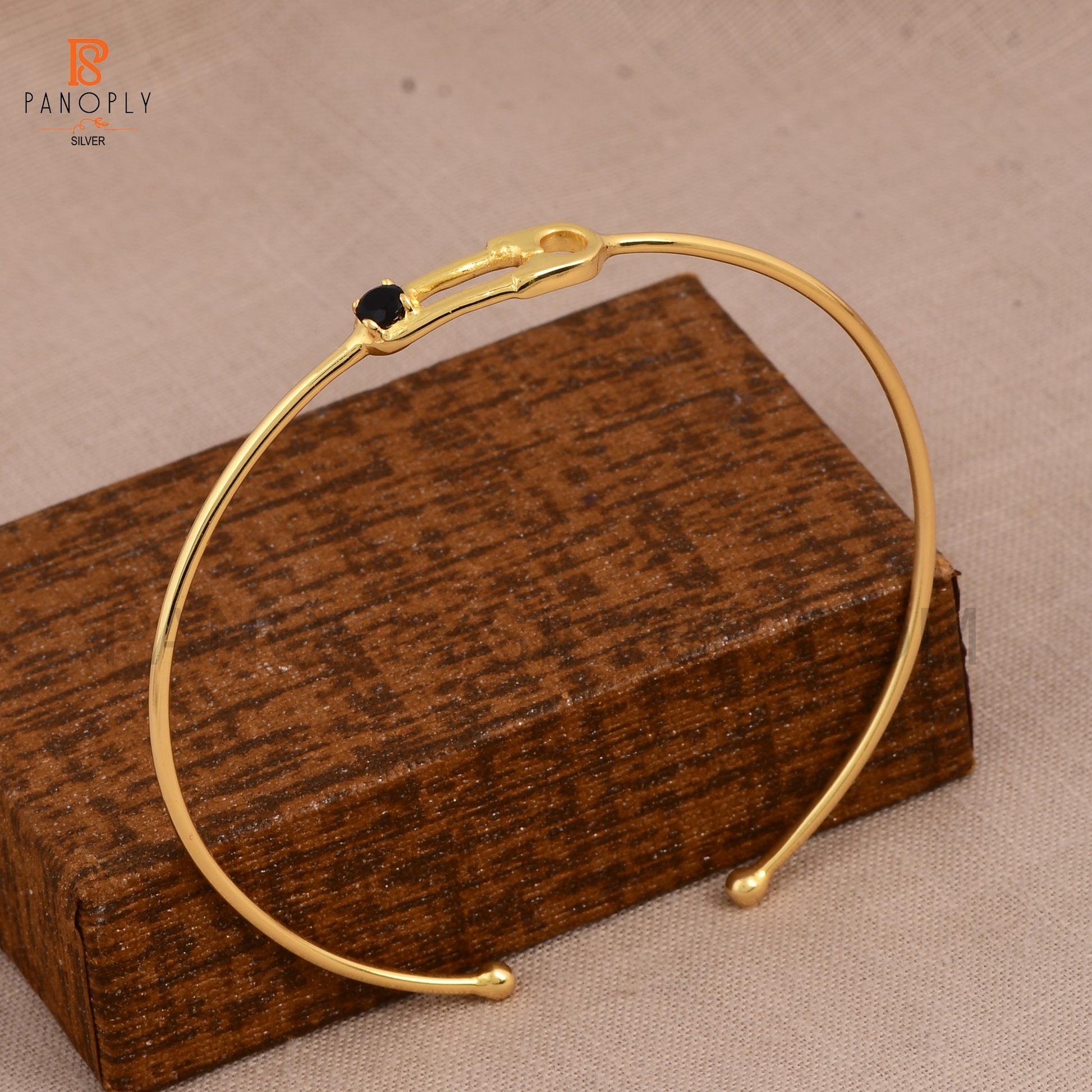 Women's Black Onyx Stone Safety Pin Cuff Bracelet