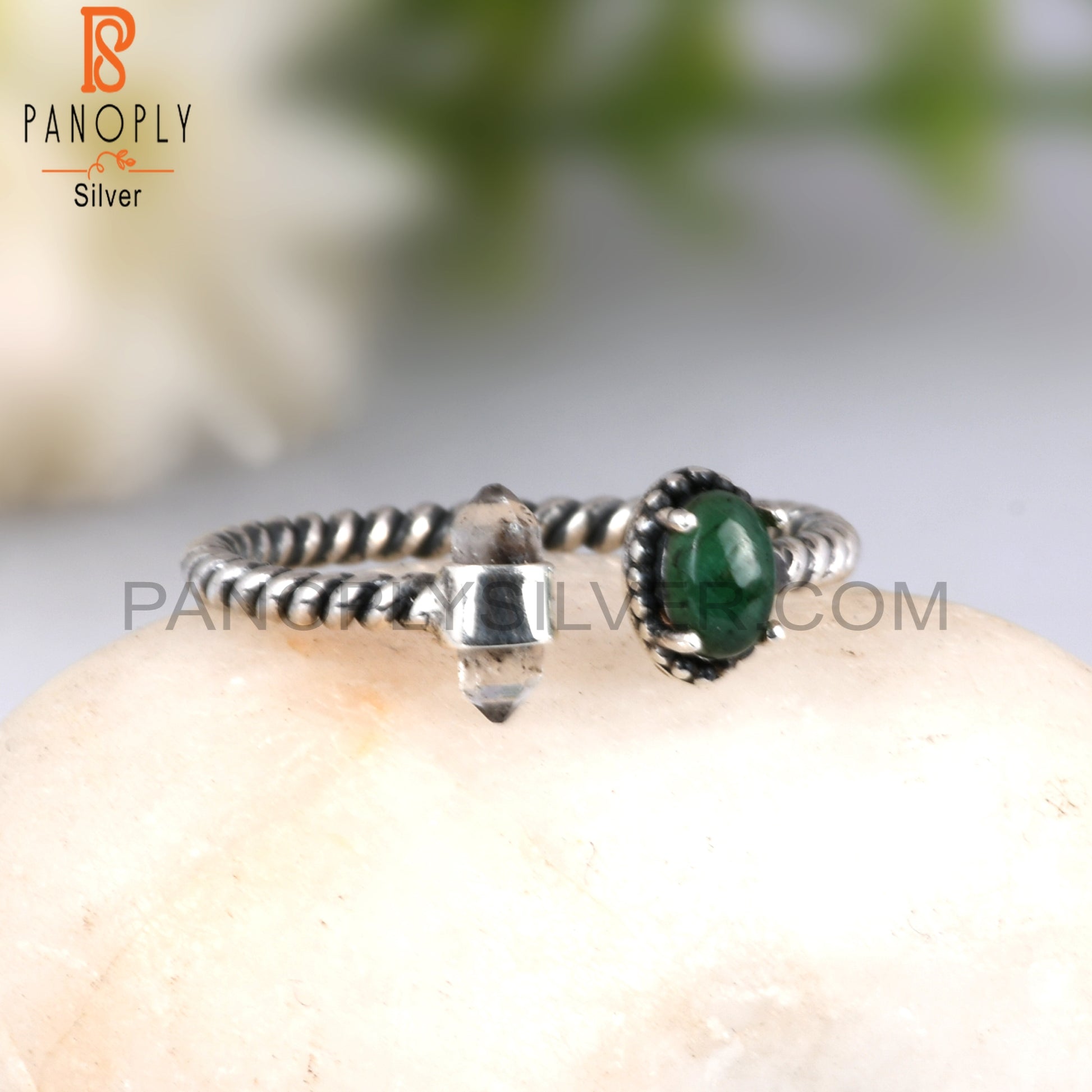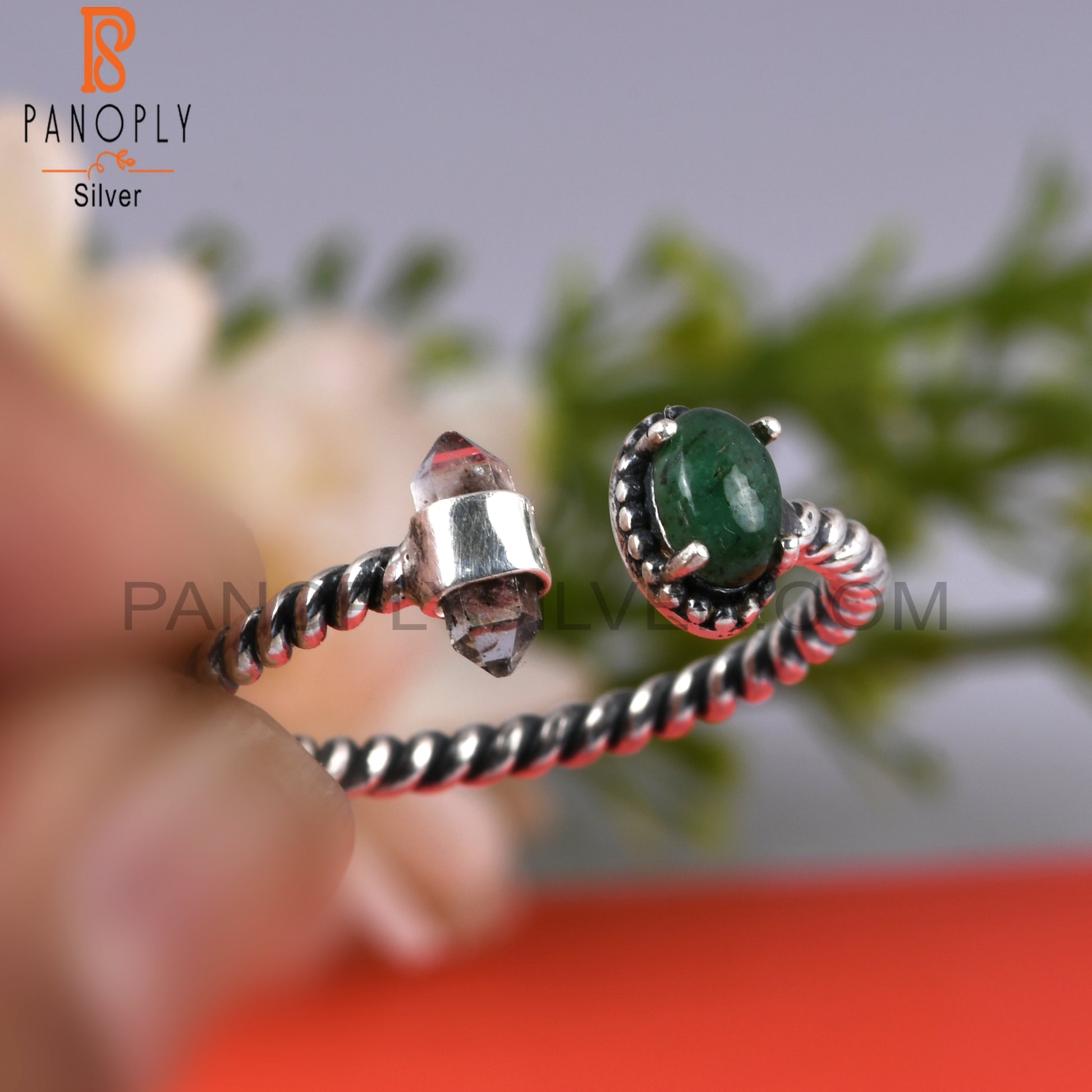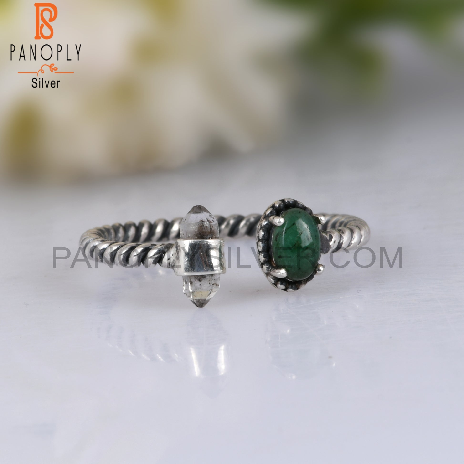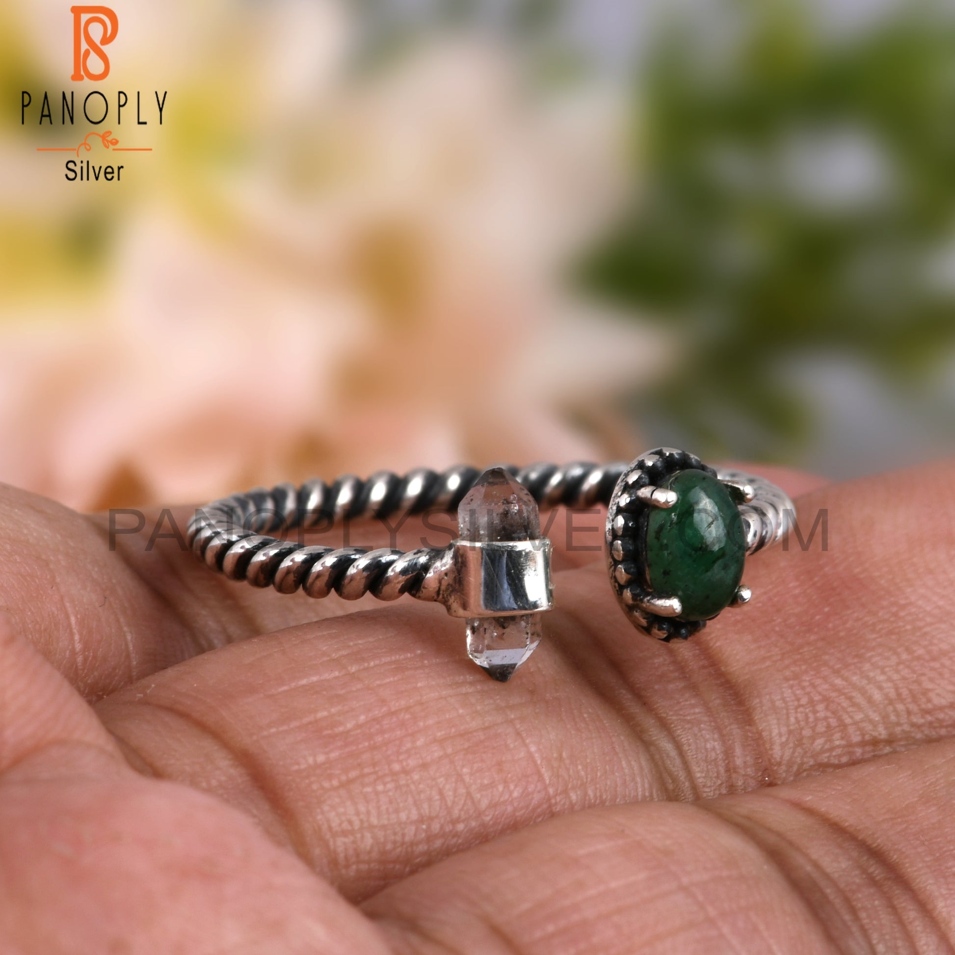 Emerald & Herkimer Diamond 925 Sterling Silver Ring