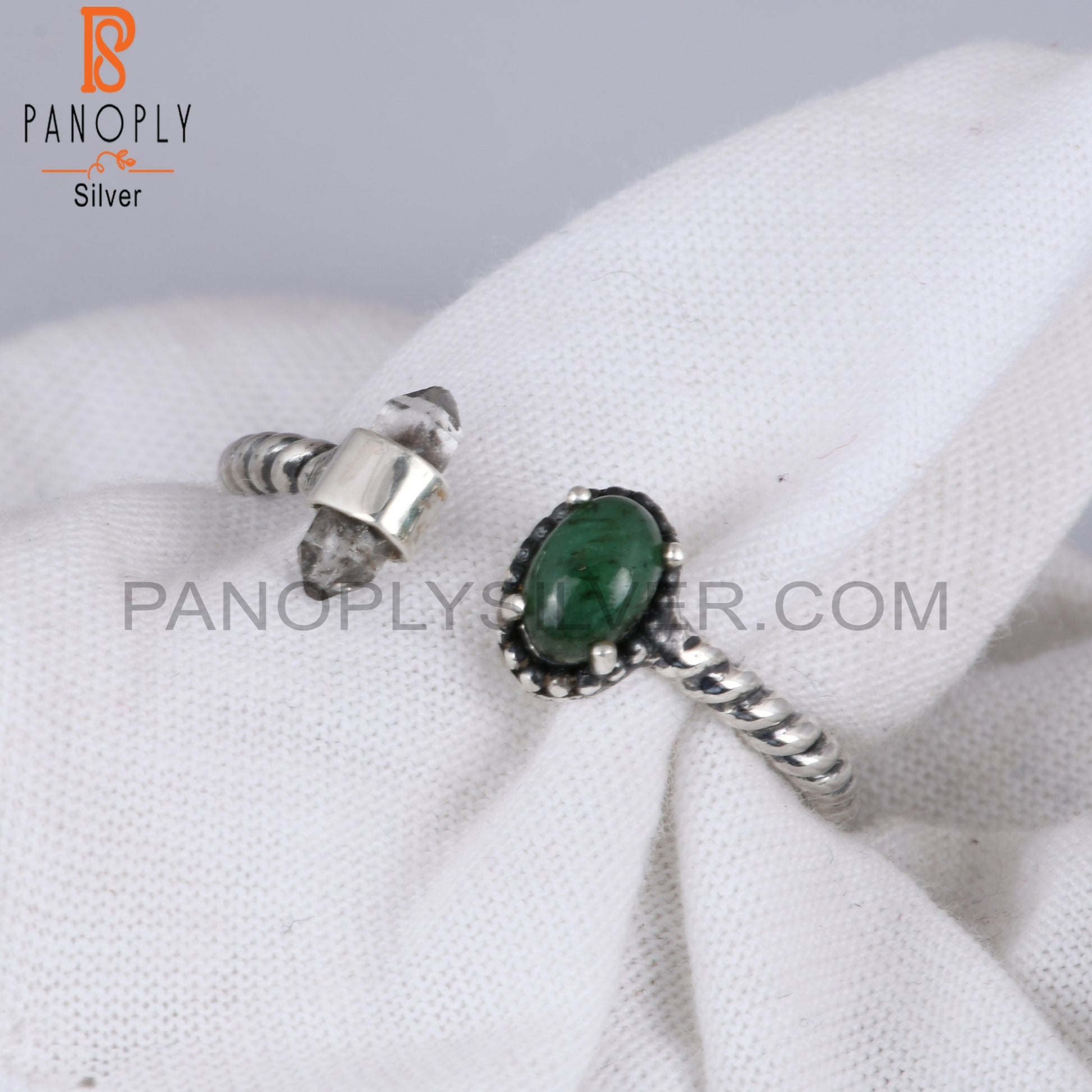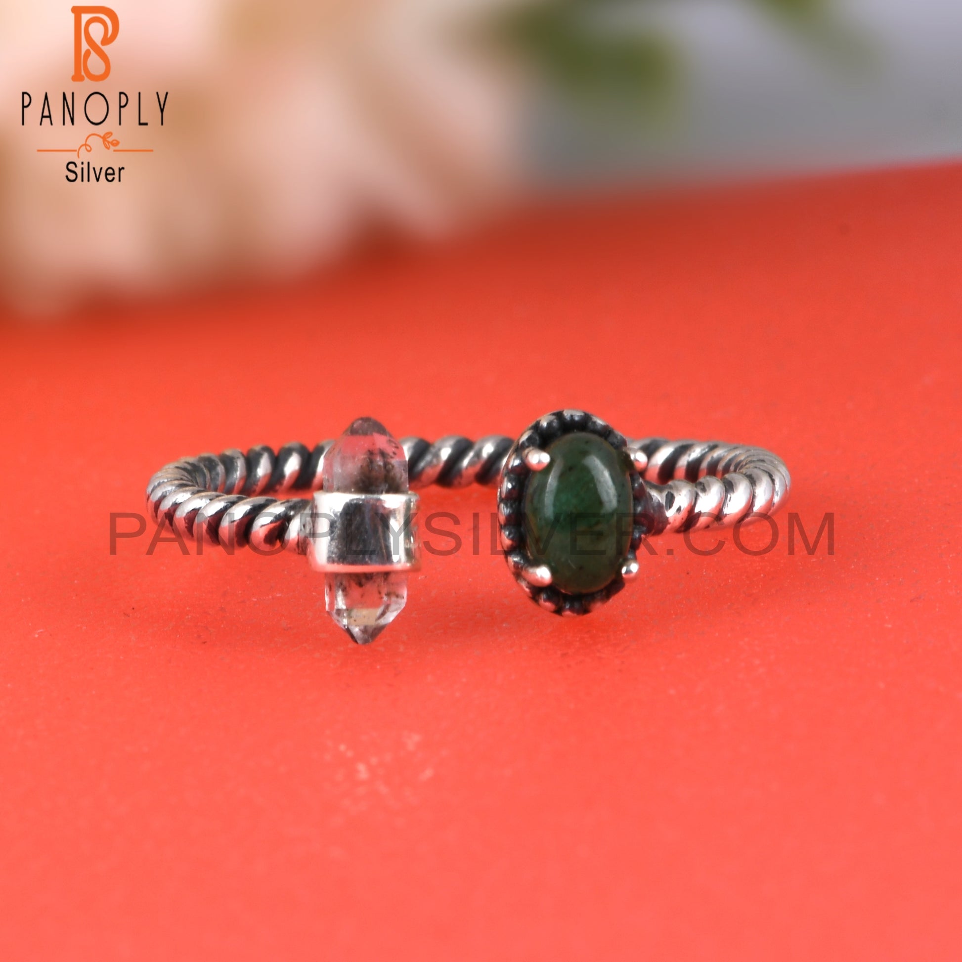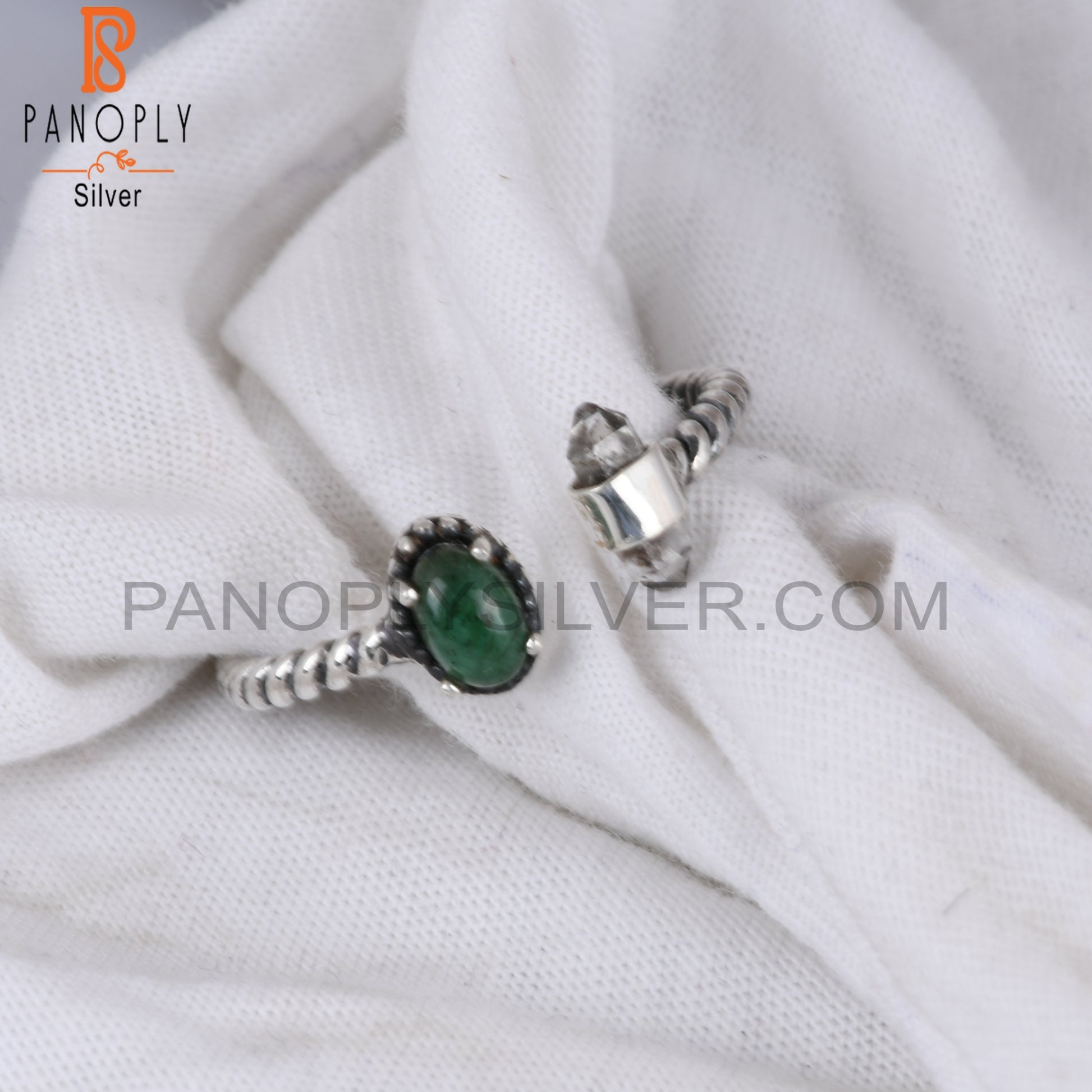 Emerald & Herkimer Diamond 925 Sterling Silver Ring