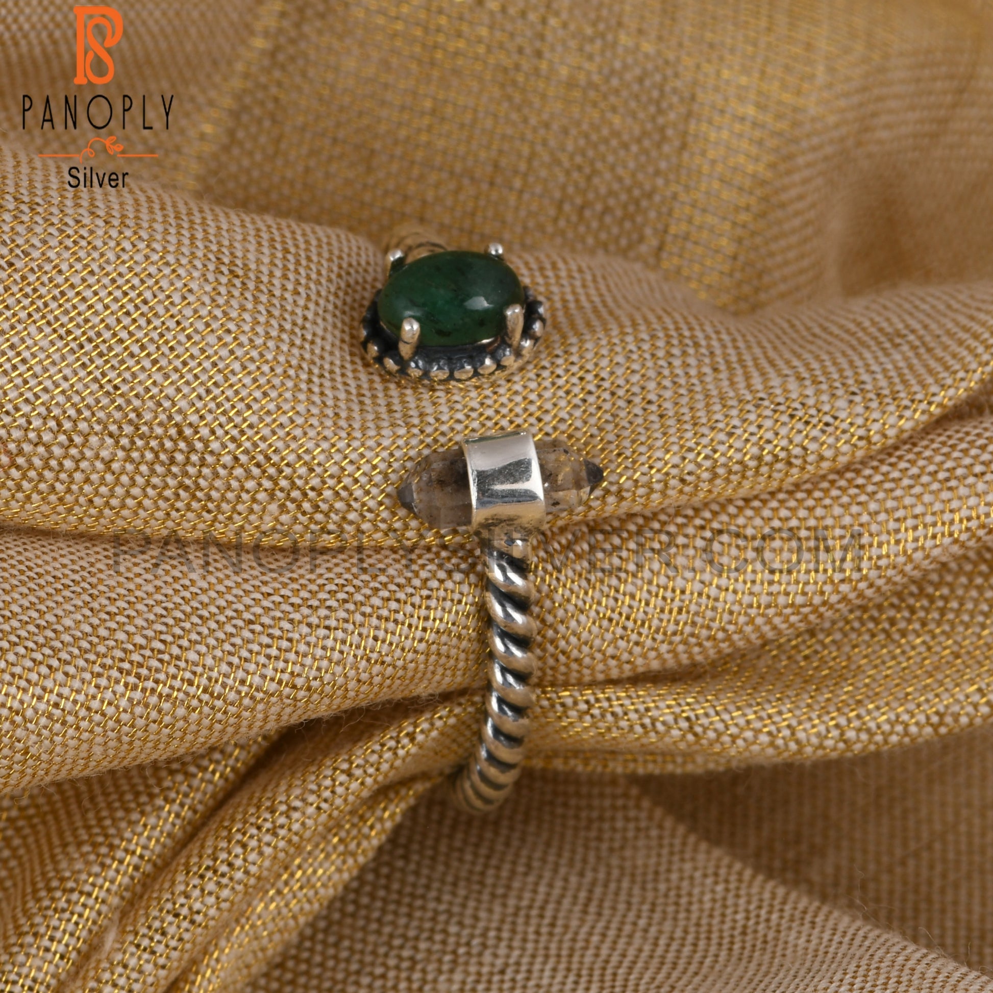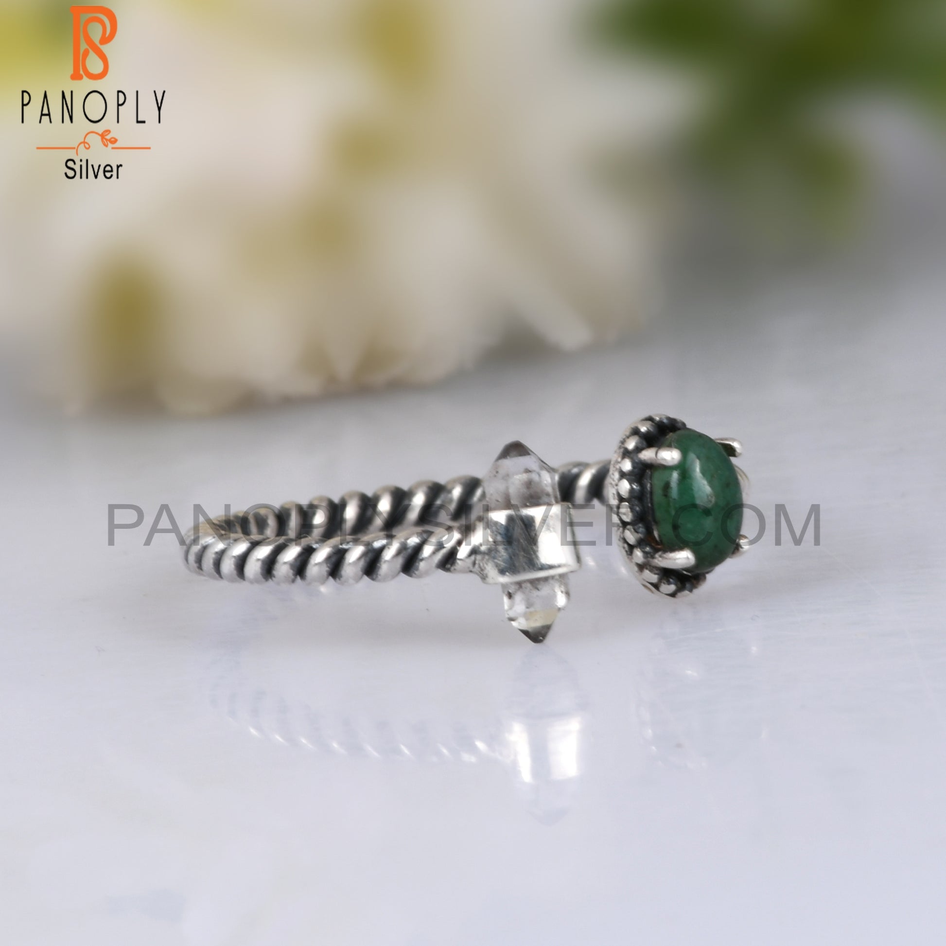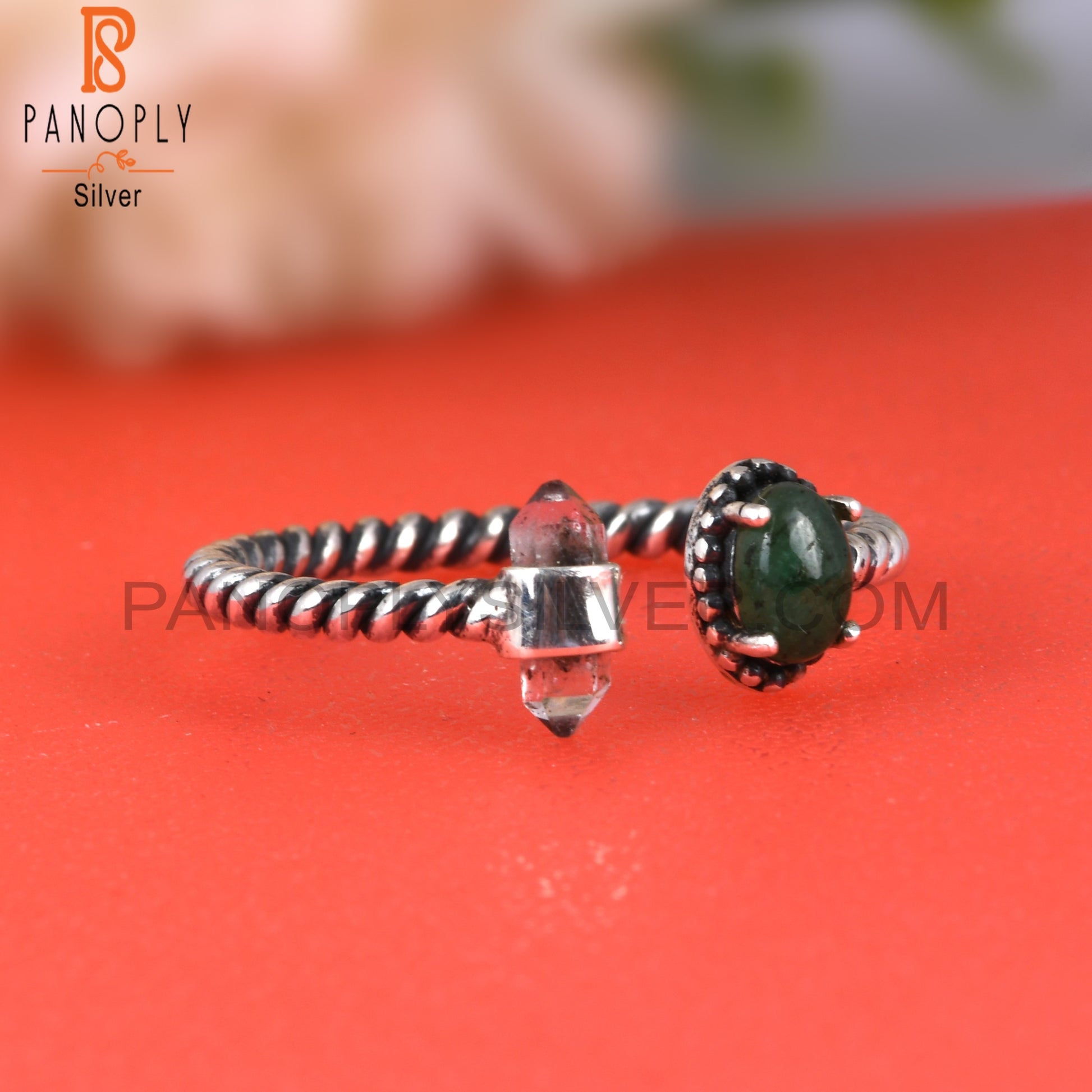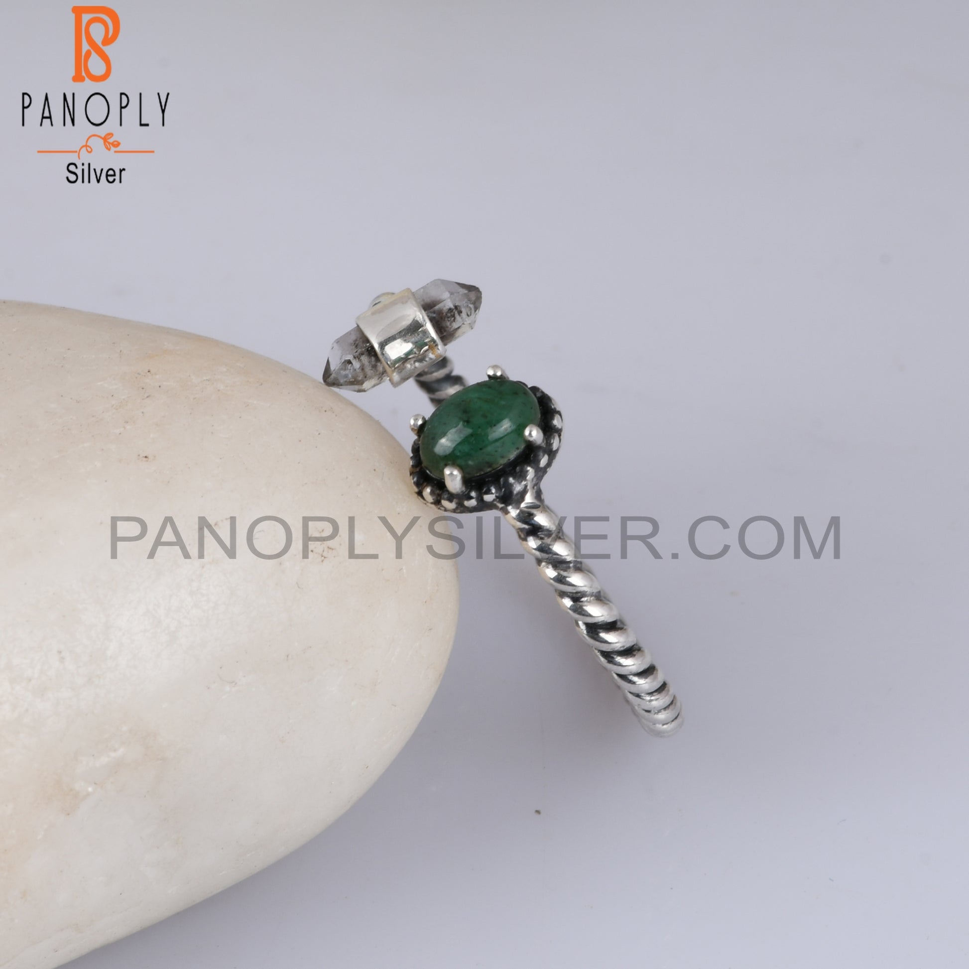 Emerald & Herkimer Diamond 925 Sterling Silver Ring