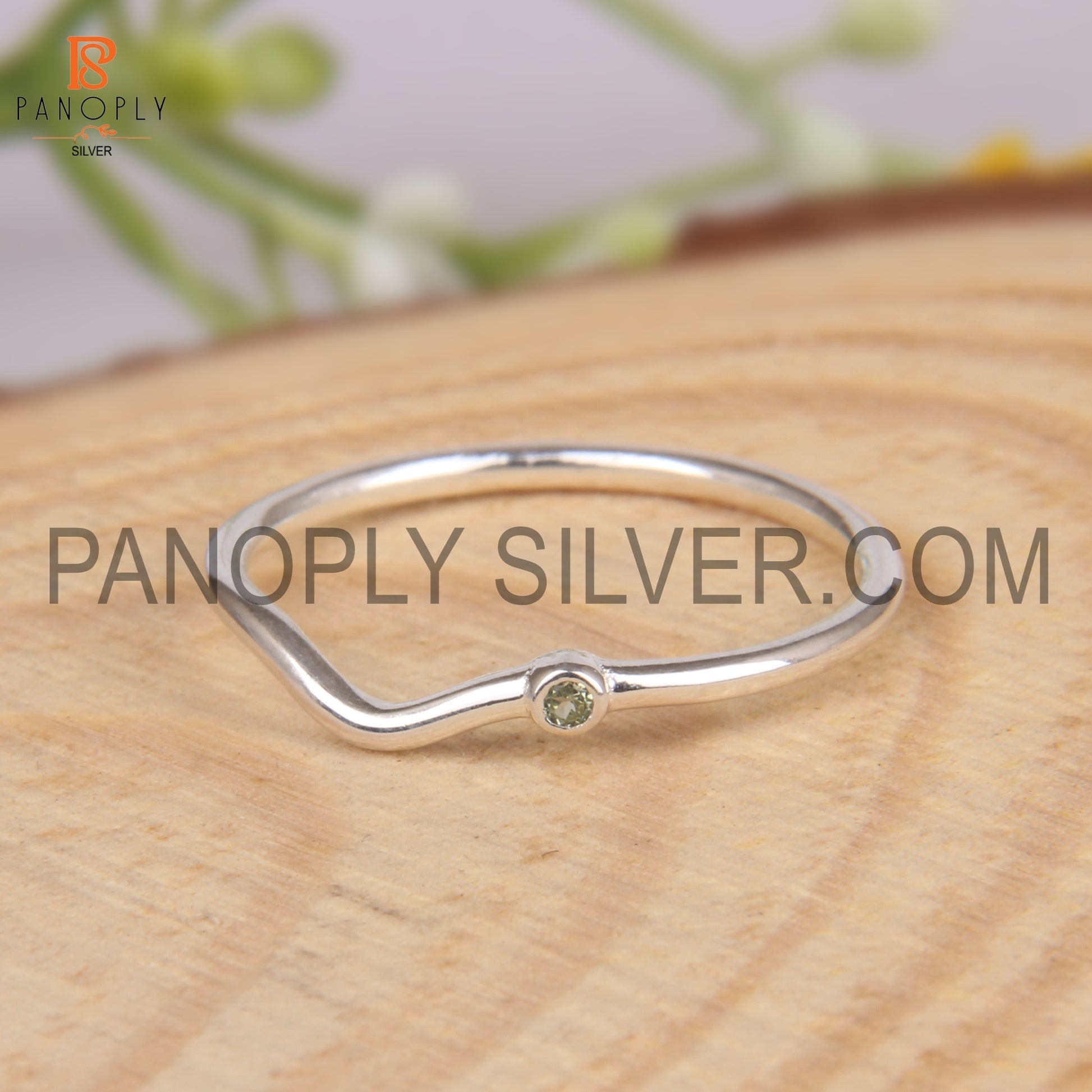 Peridot 925 Silver Green Gemstone Curve Band Rings