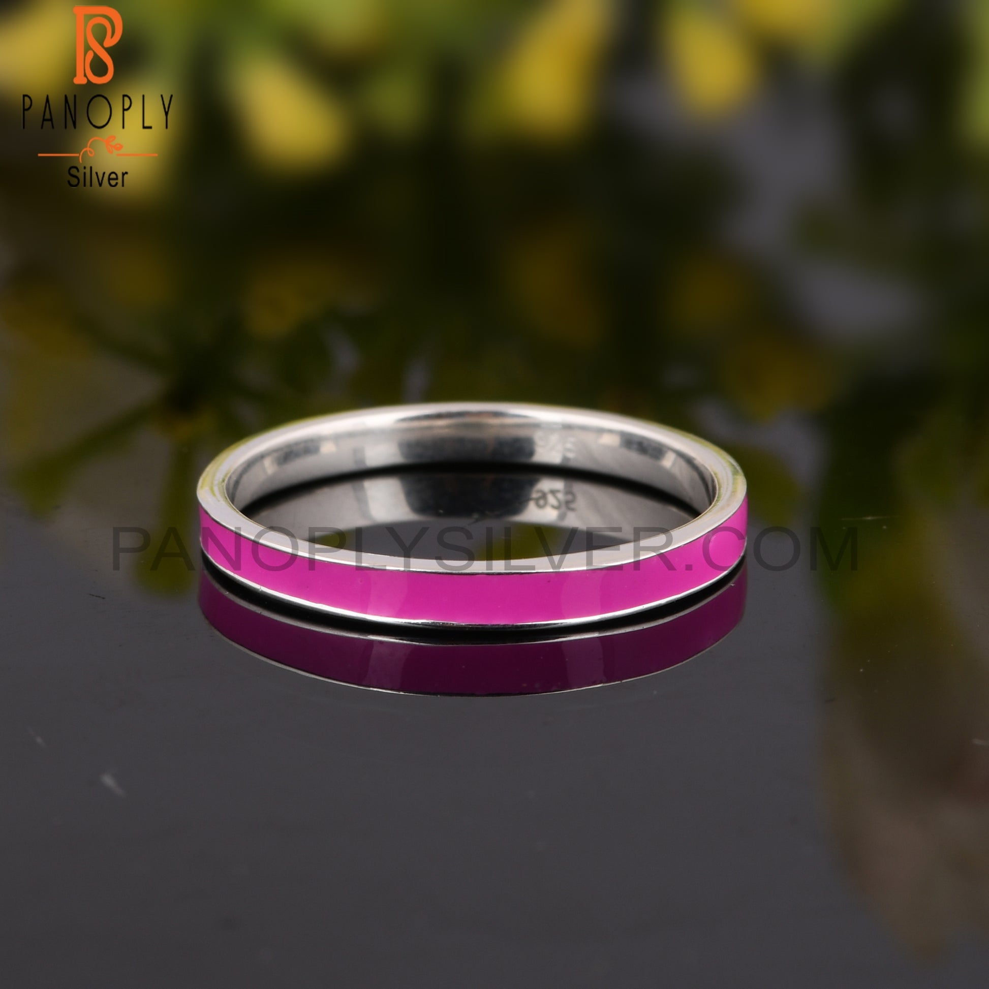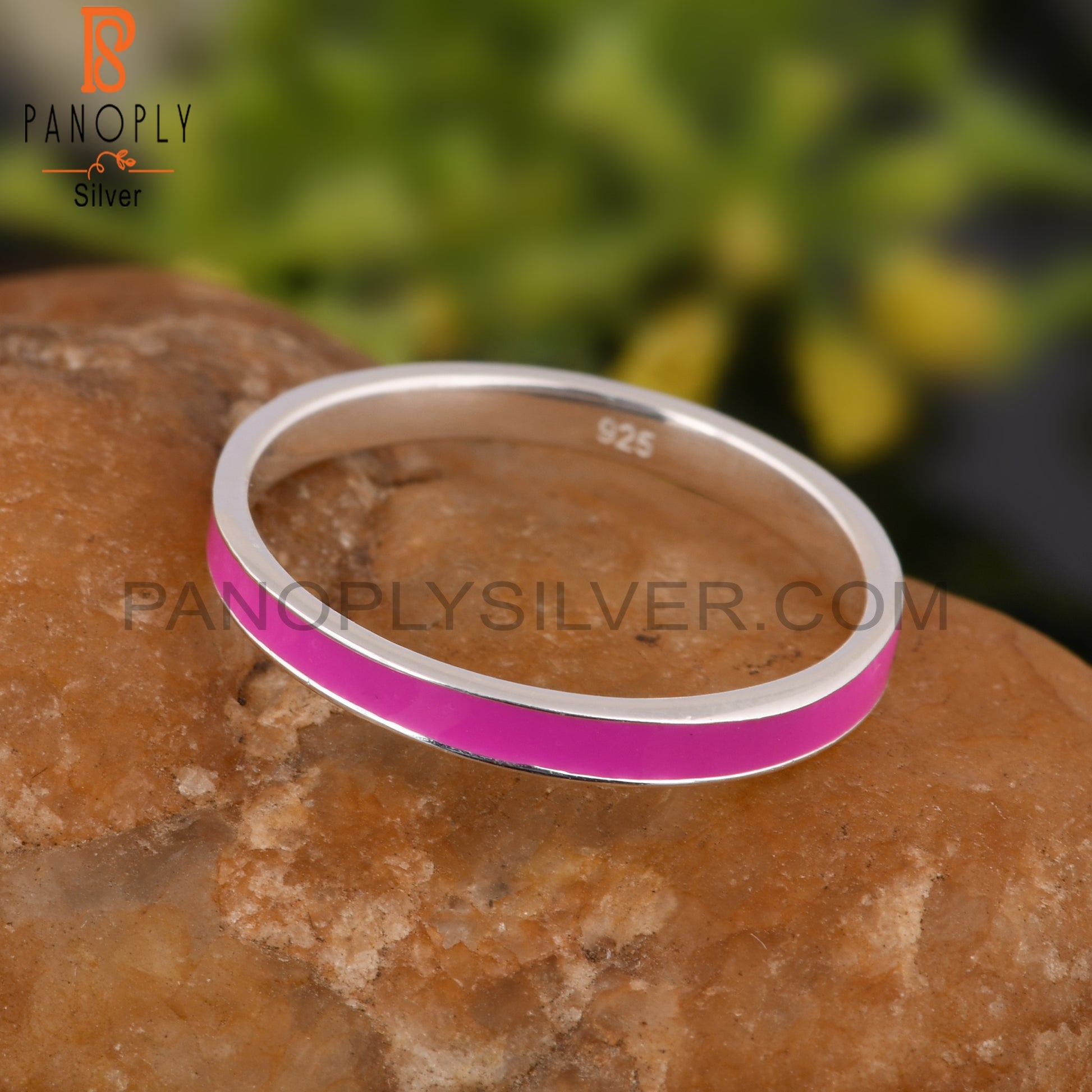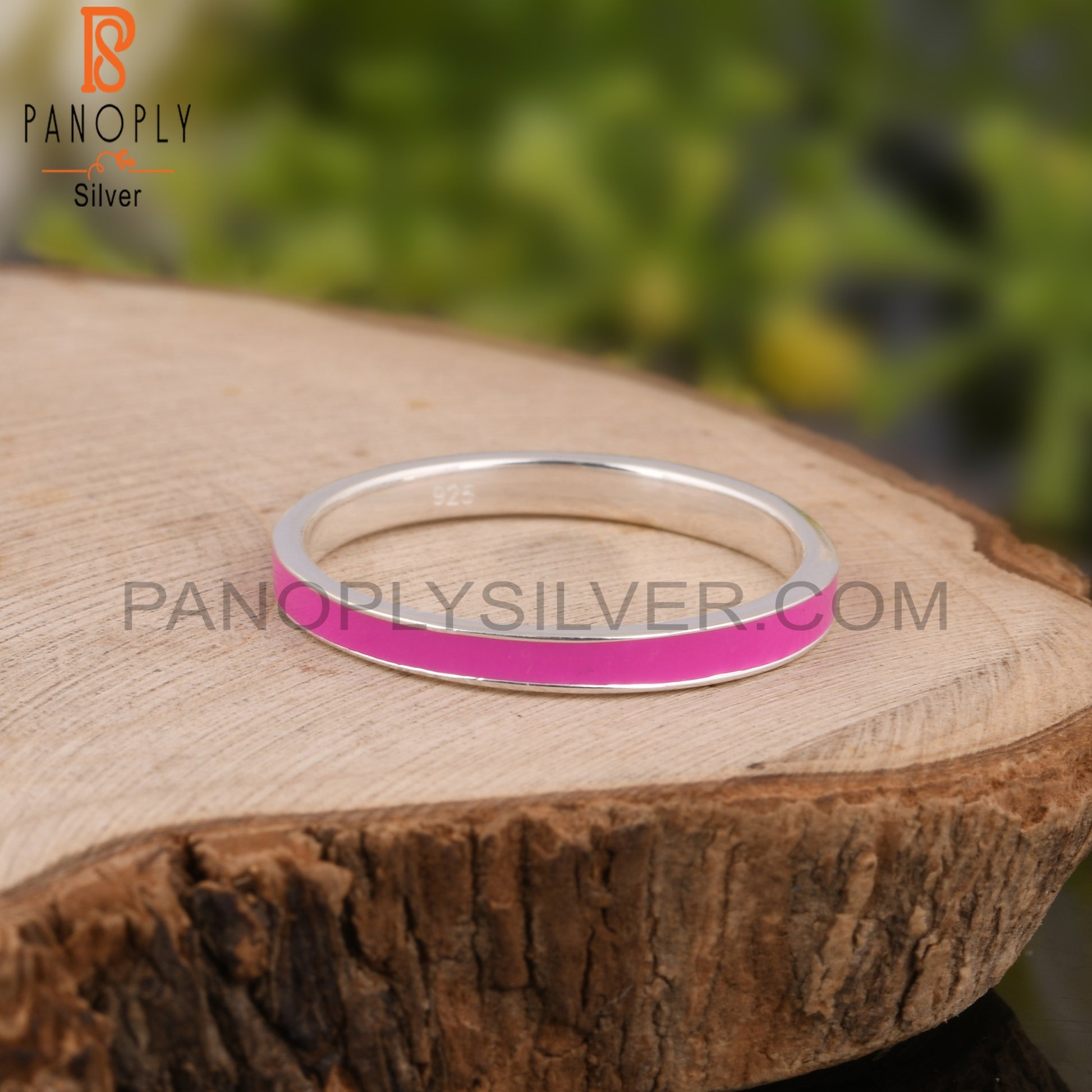 Pink Enamel Fine 925 Silver Statement Band Ring Jewelry
