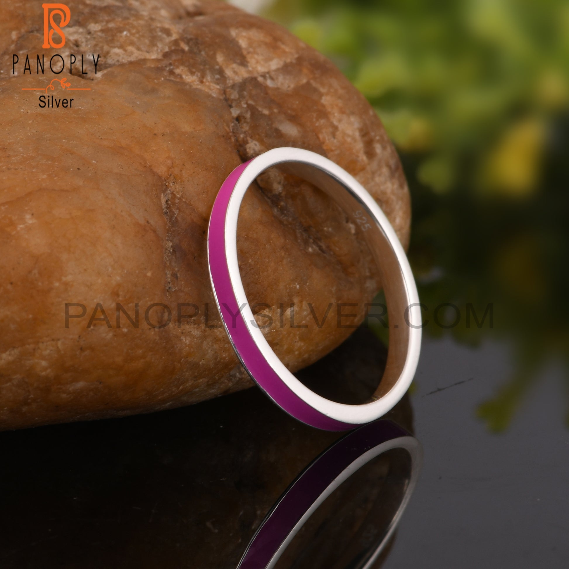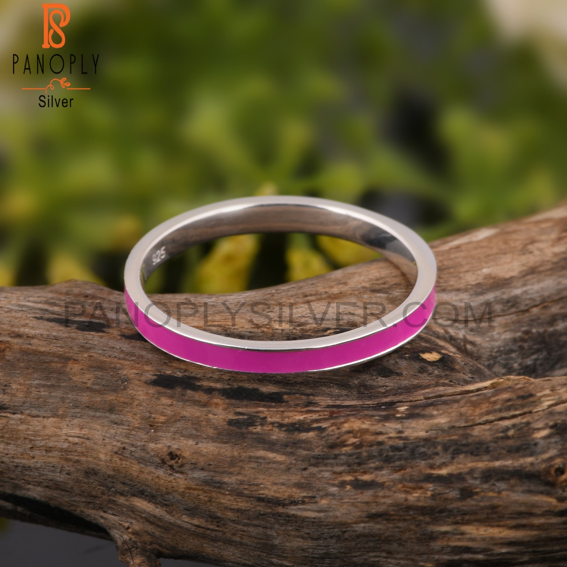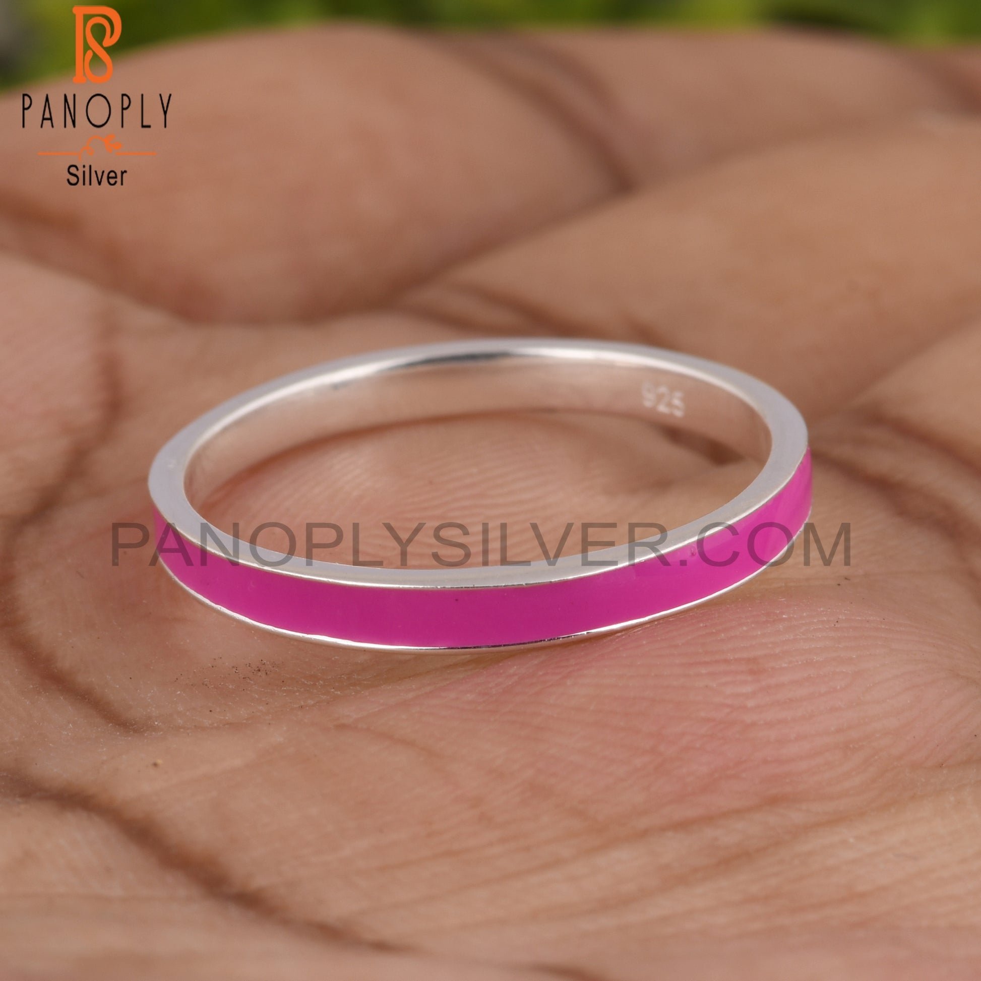 Pink Enamel Fine 925 Silver Statement Band Ring Jewelry