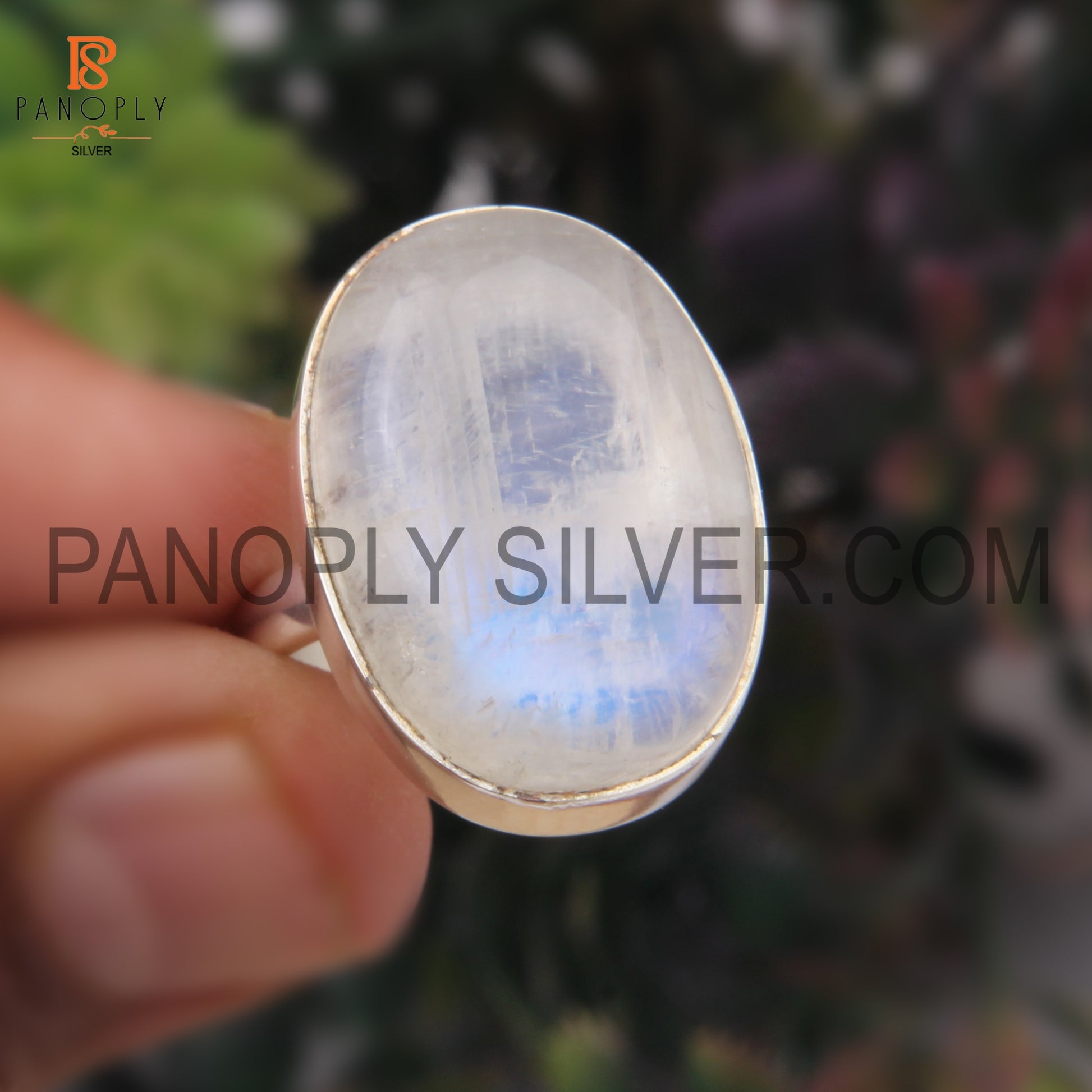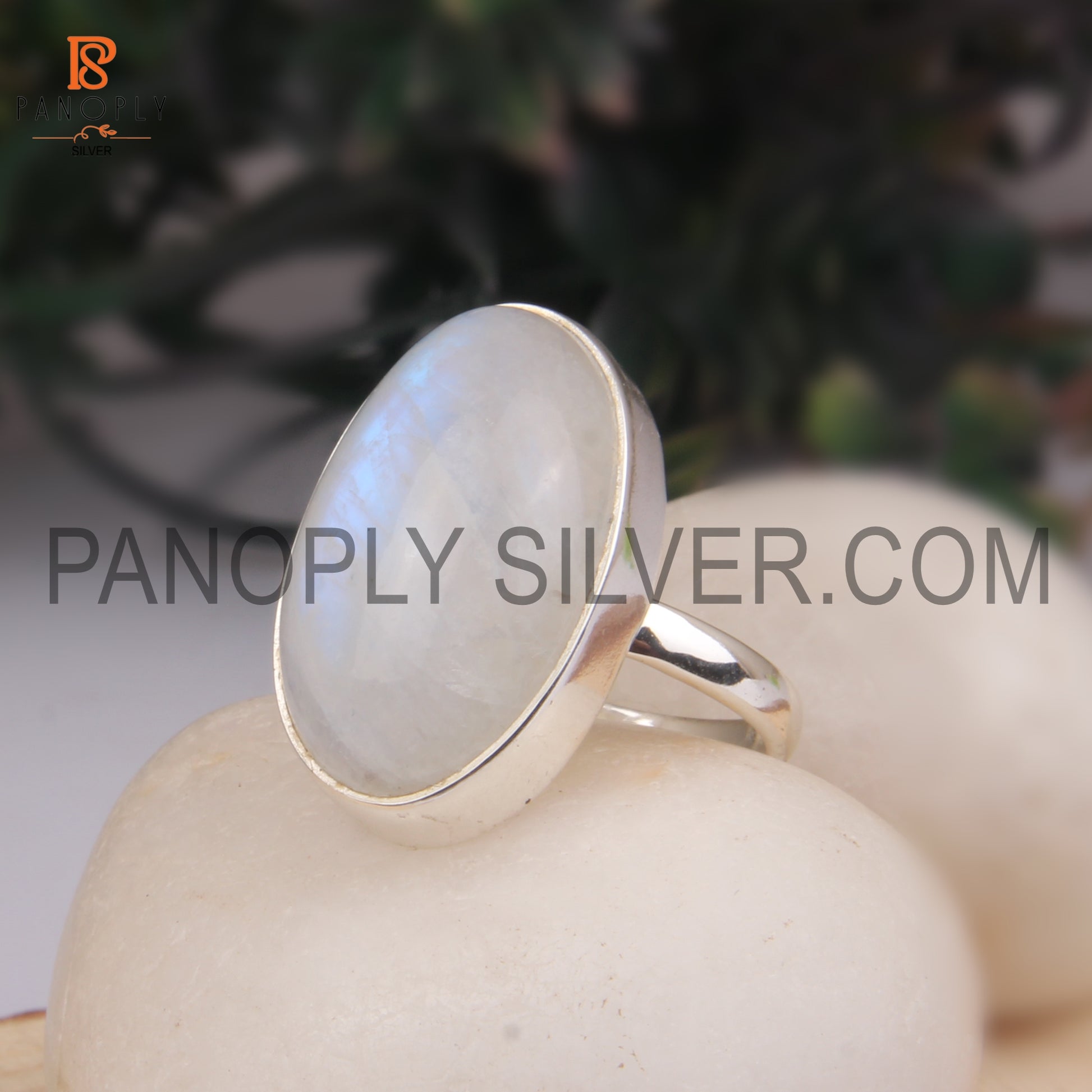 Rainbow 925 Quality Silver Moonstone Men's Rings