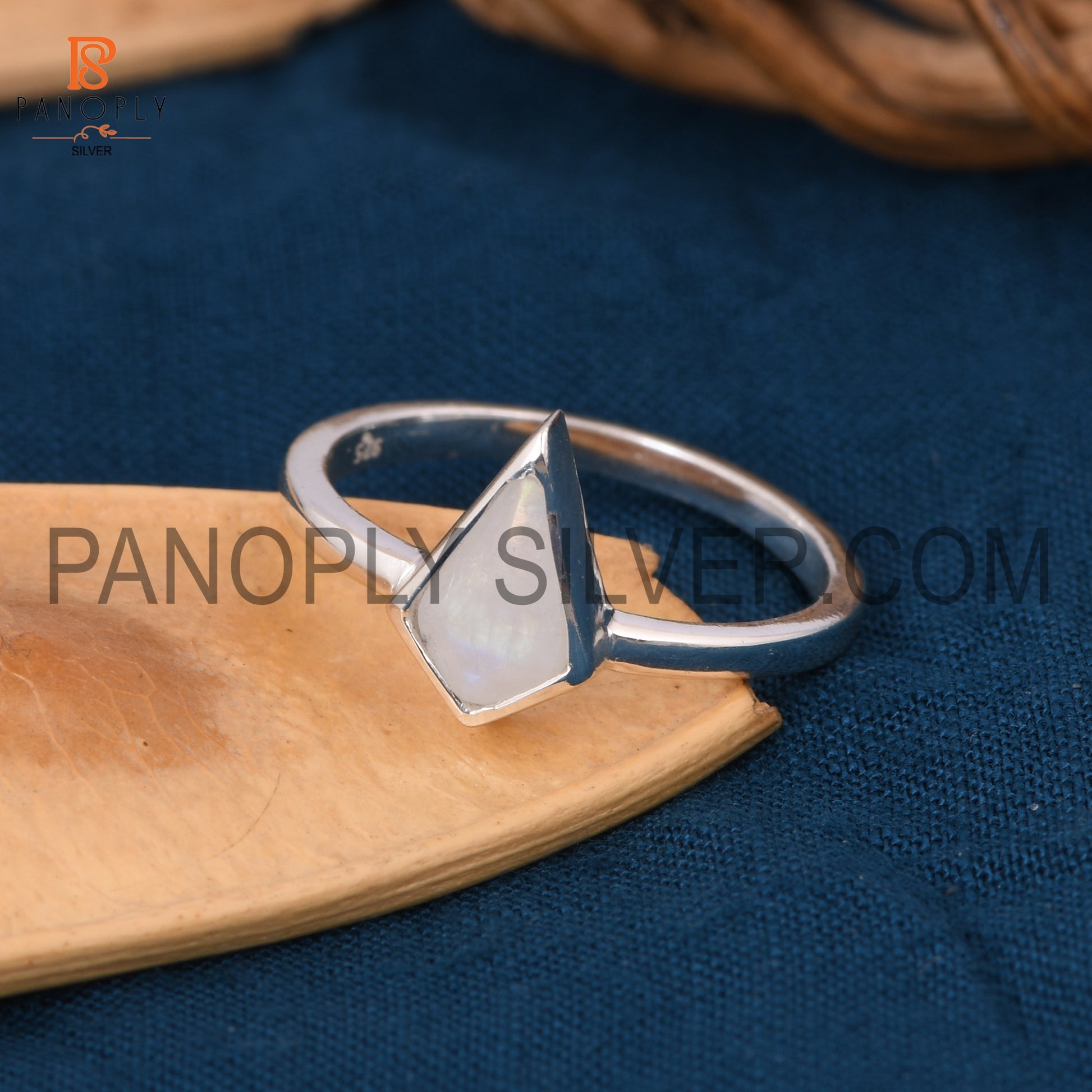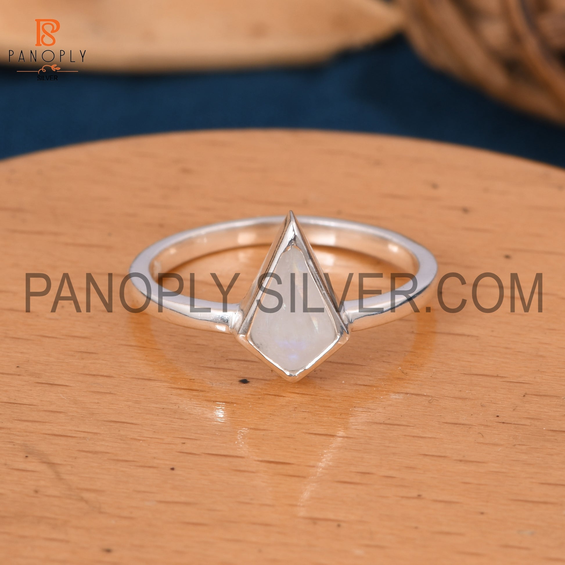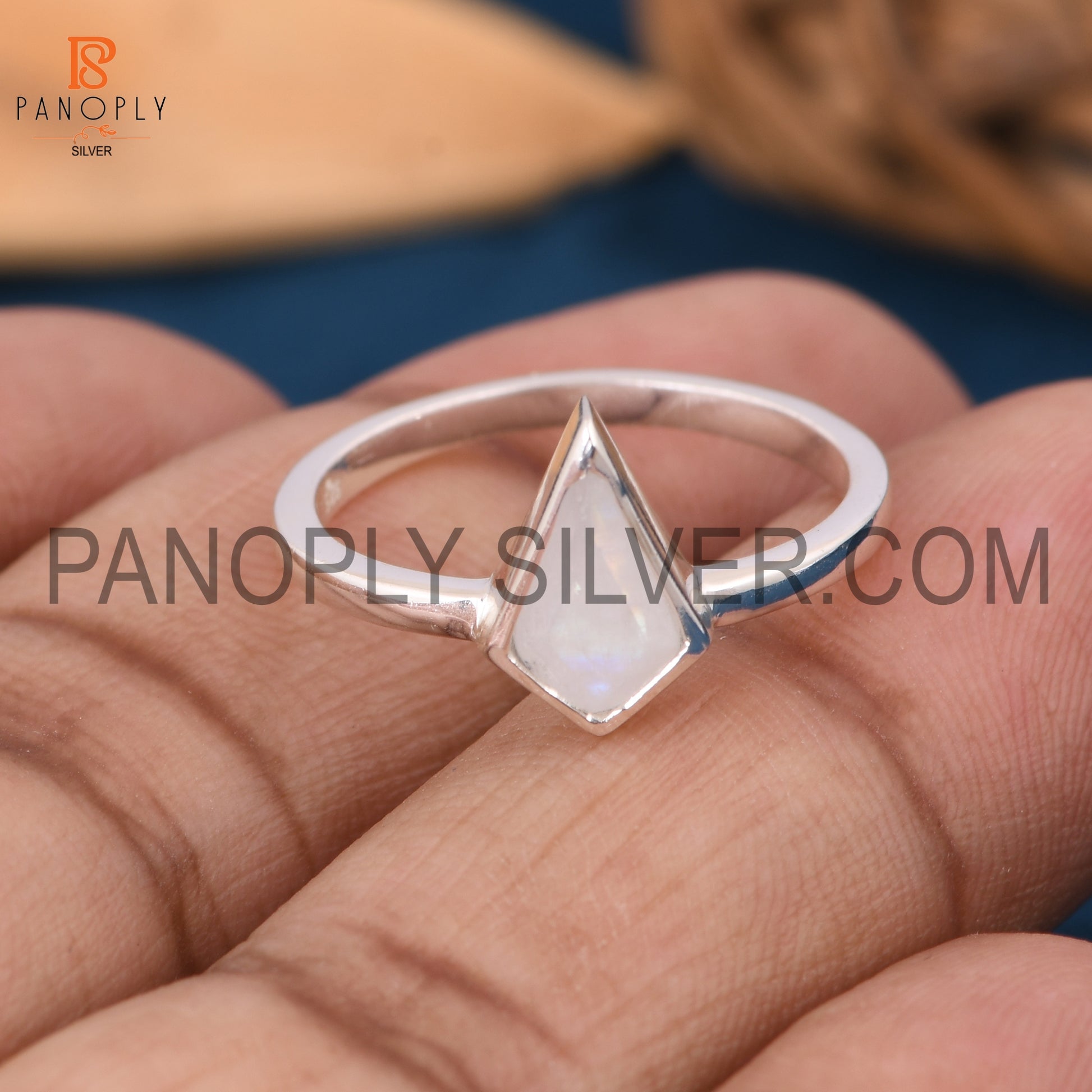 Rainbow Moonstone 925 Kite Shape White Gemstone Rings