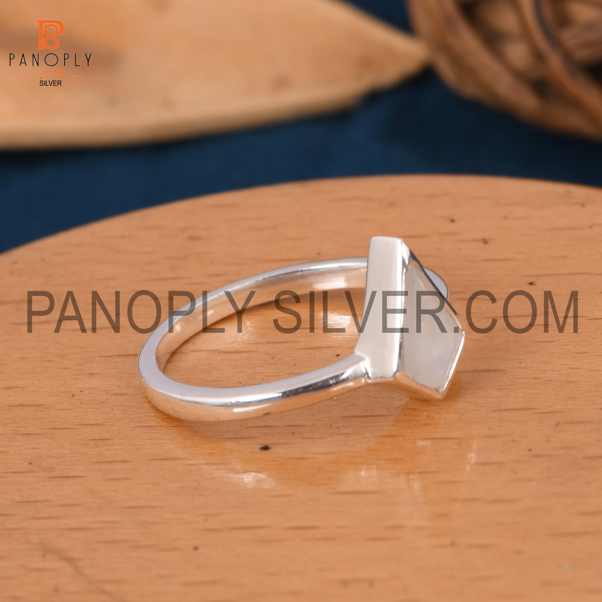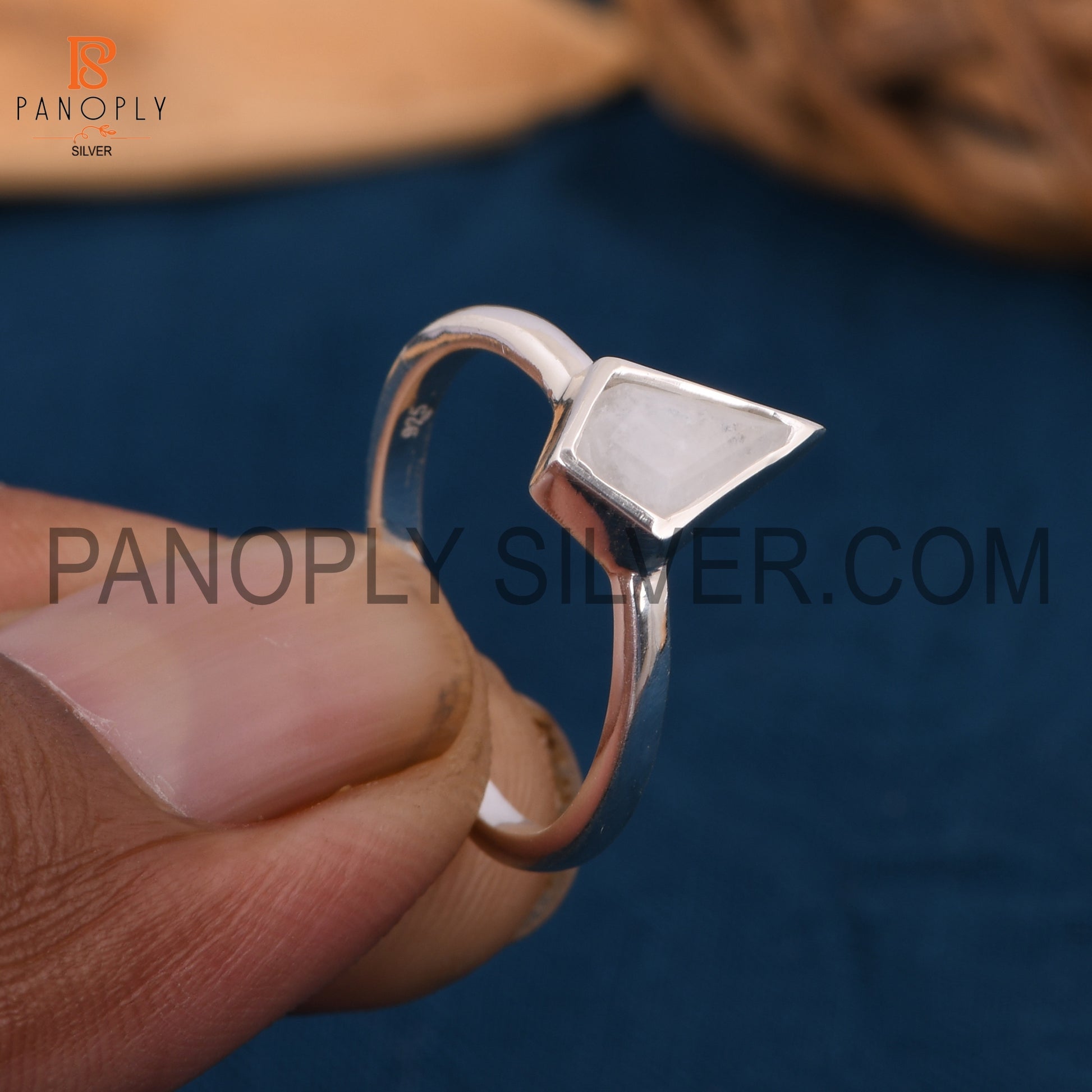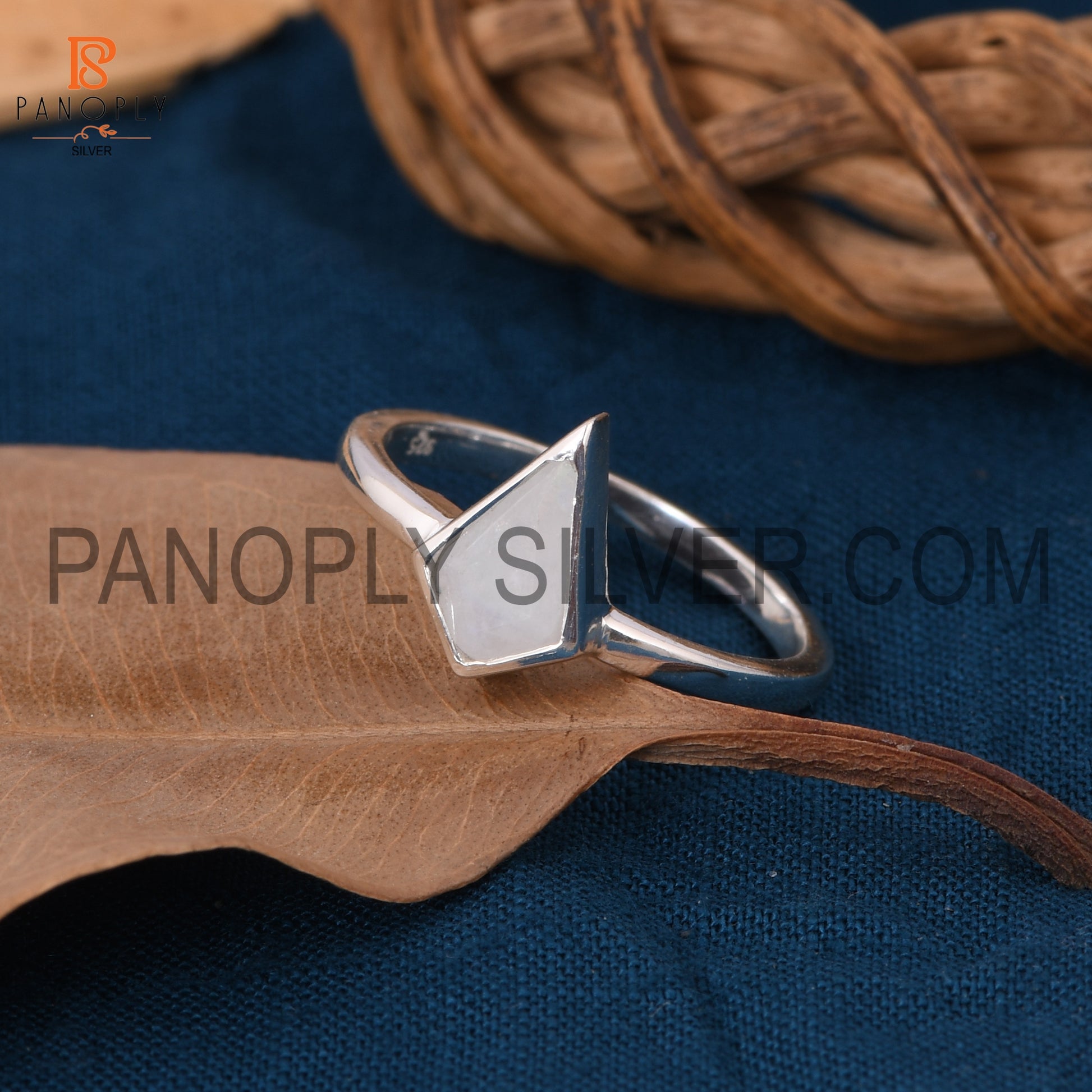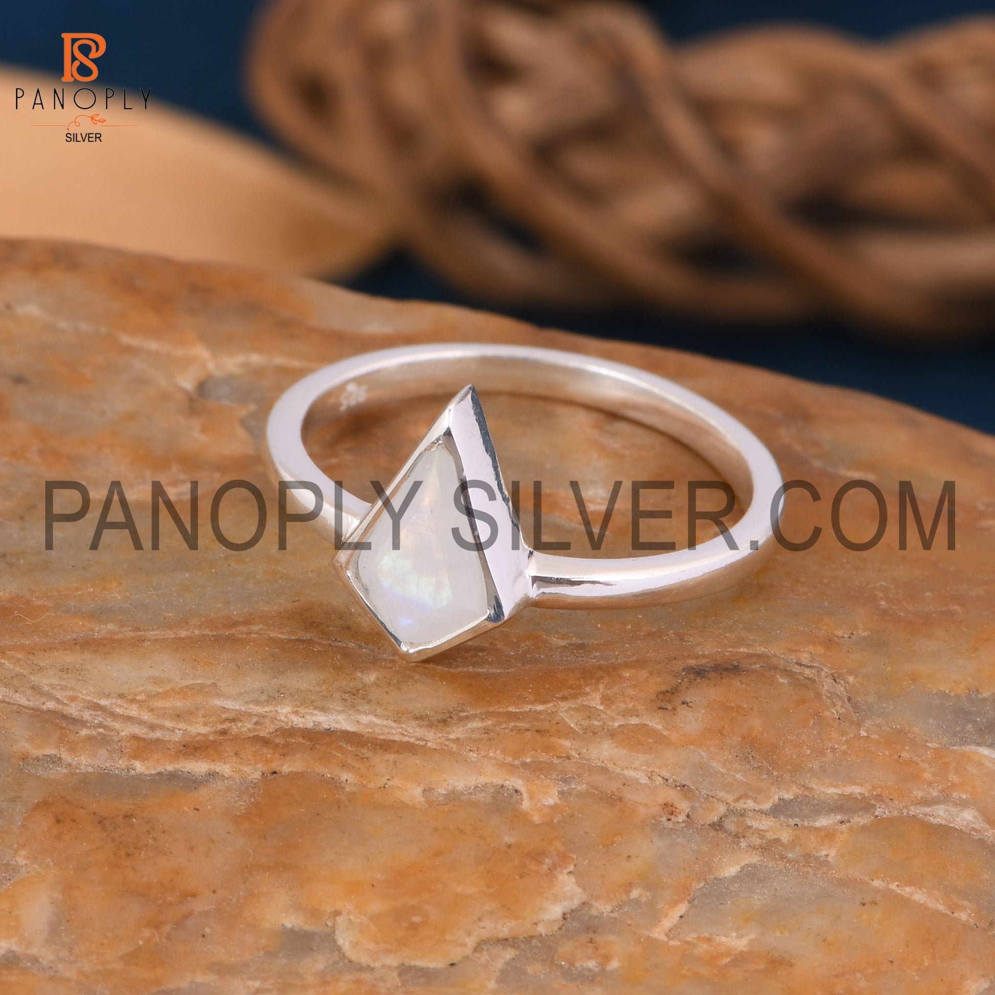 Rainbow Moonstone 925 Kite Shape White Gemstone Rings