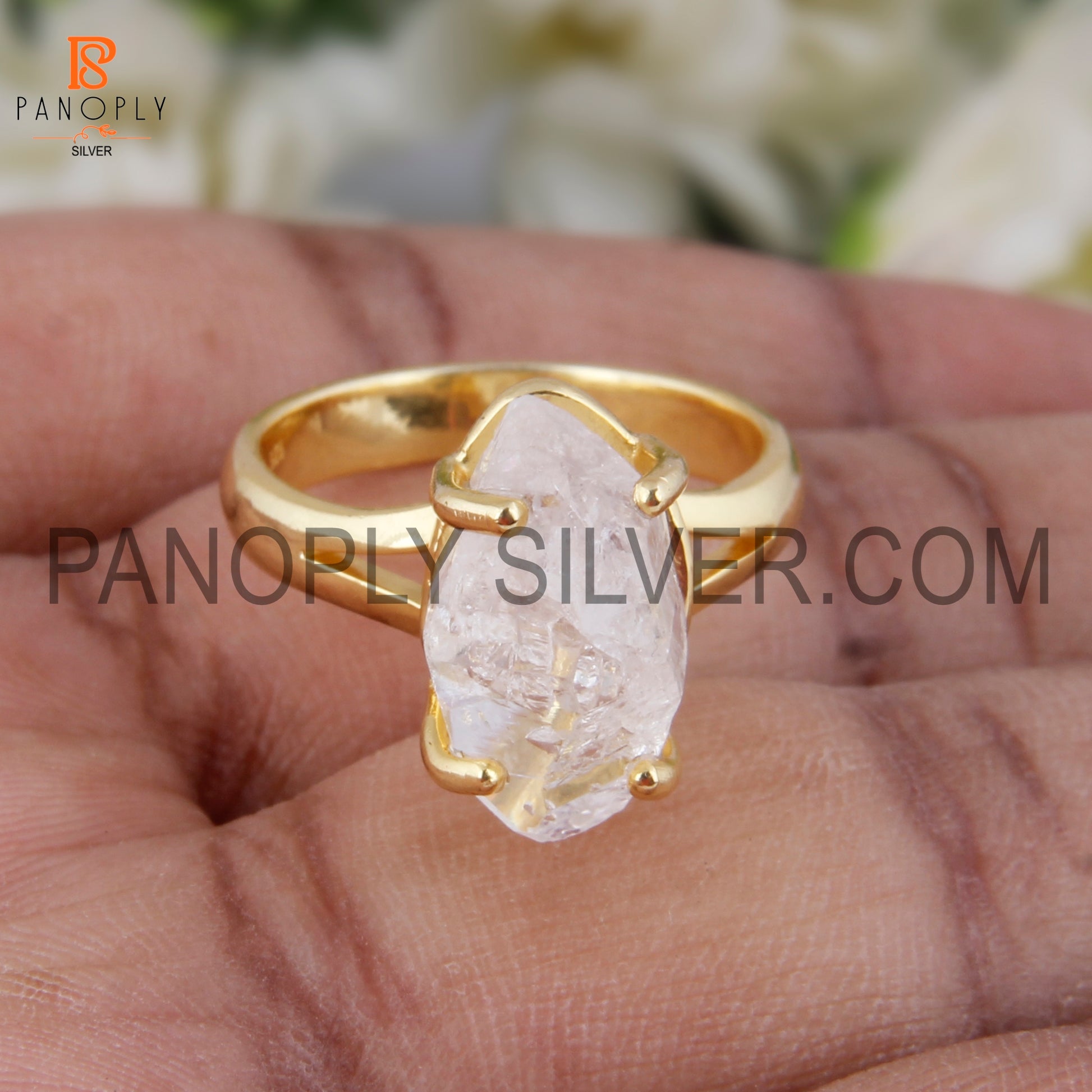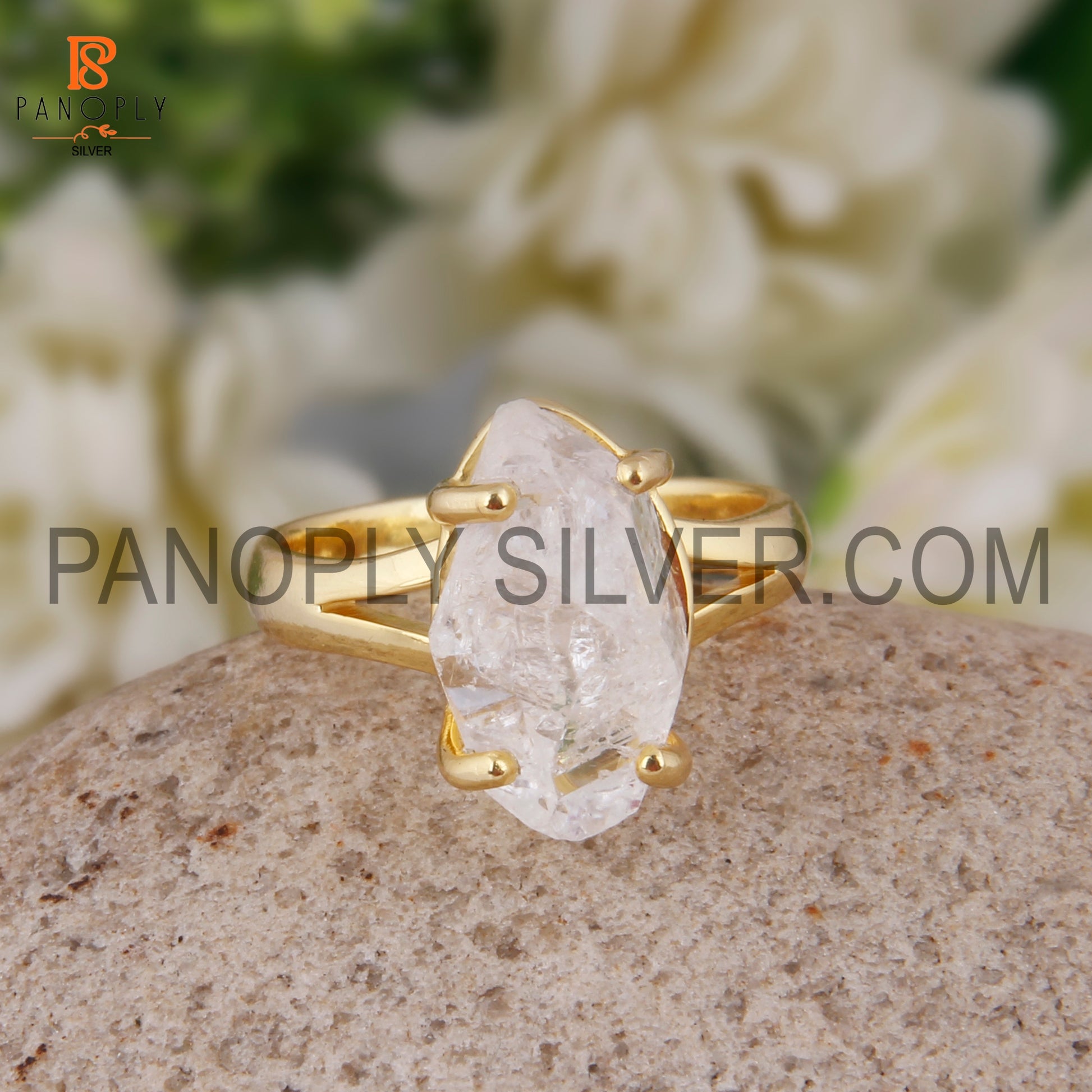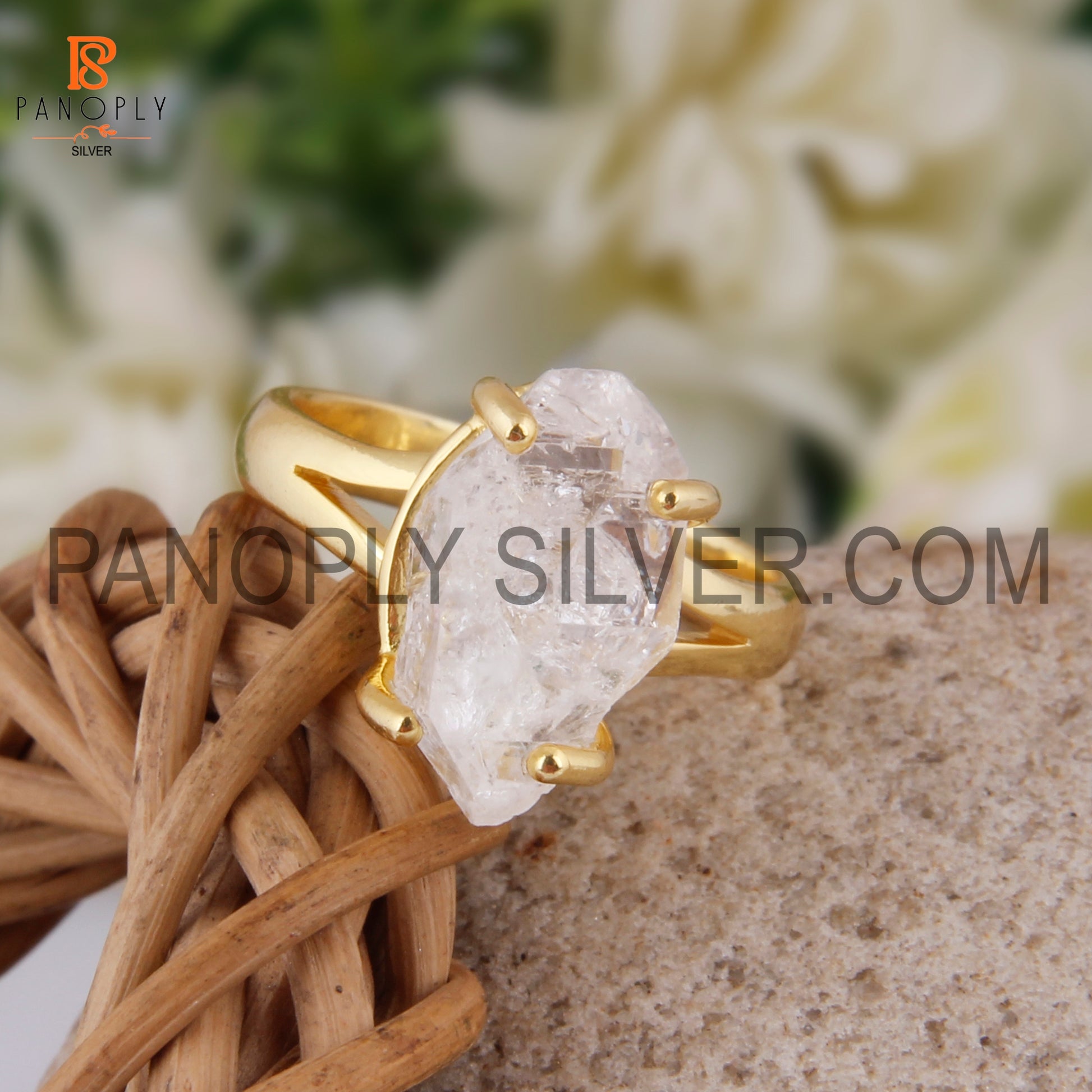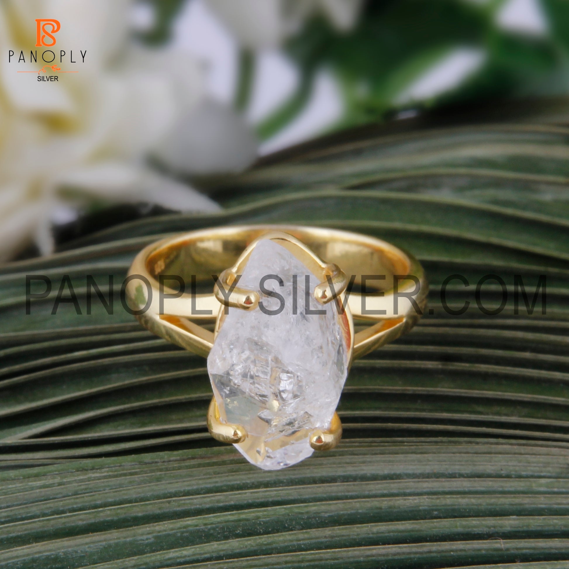 Raw Herkimer Diamond Gold Plated Sterling Silver Rings