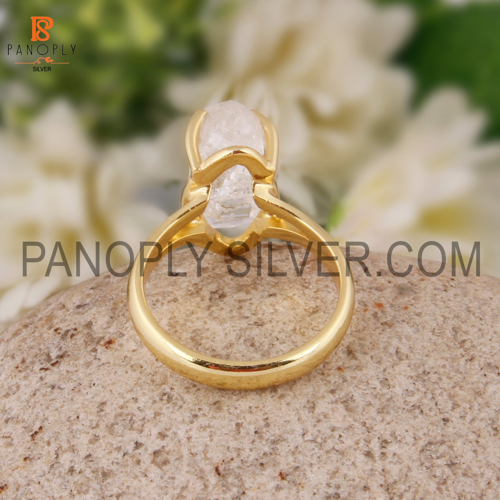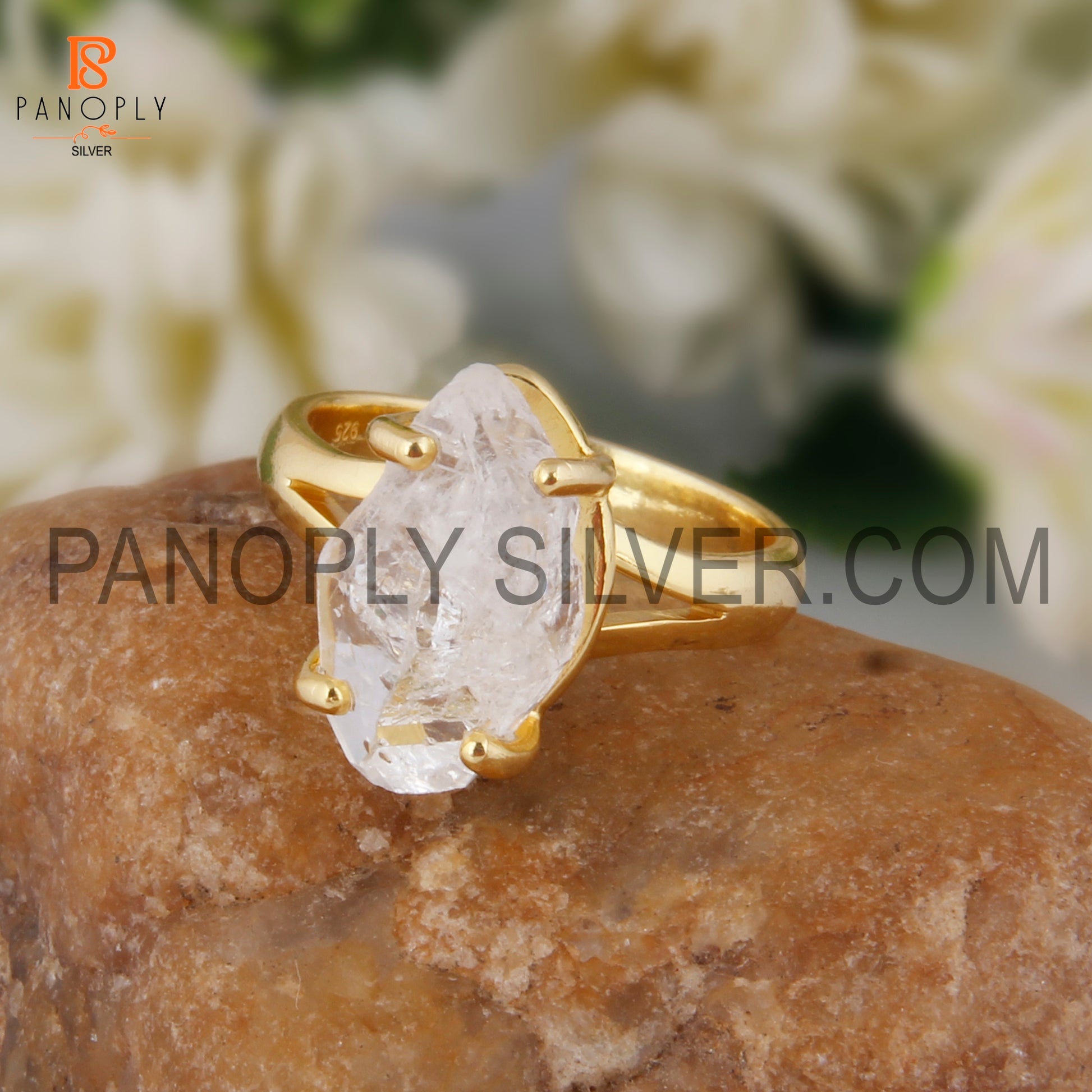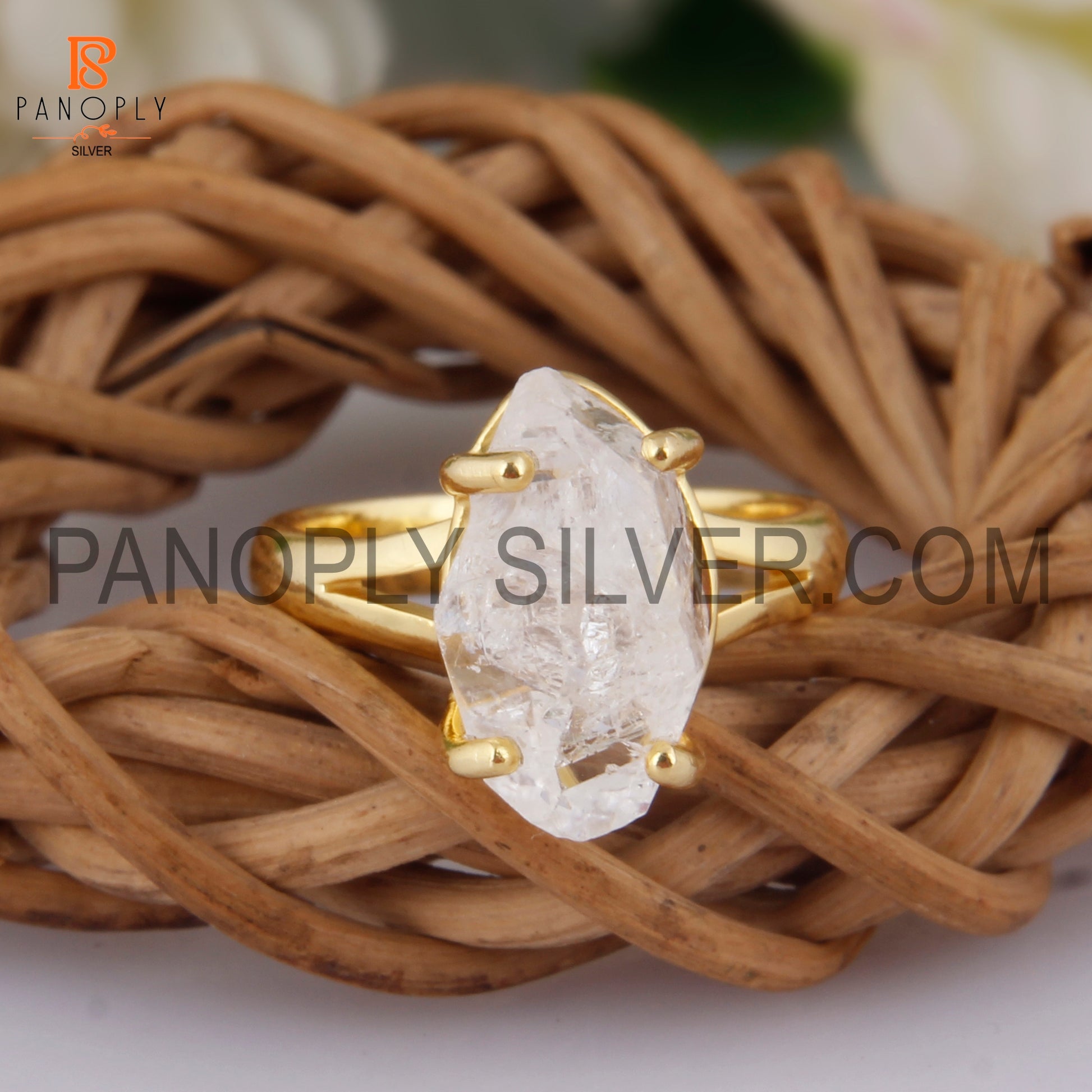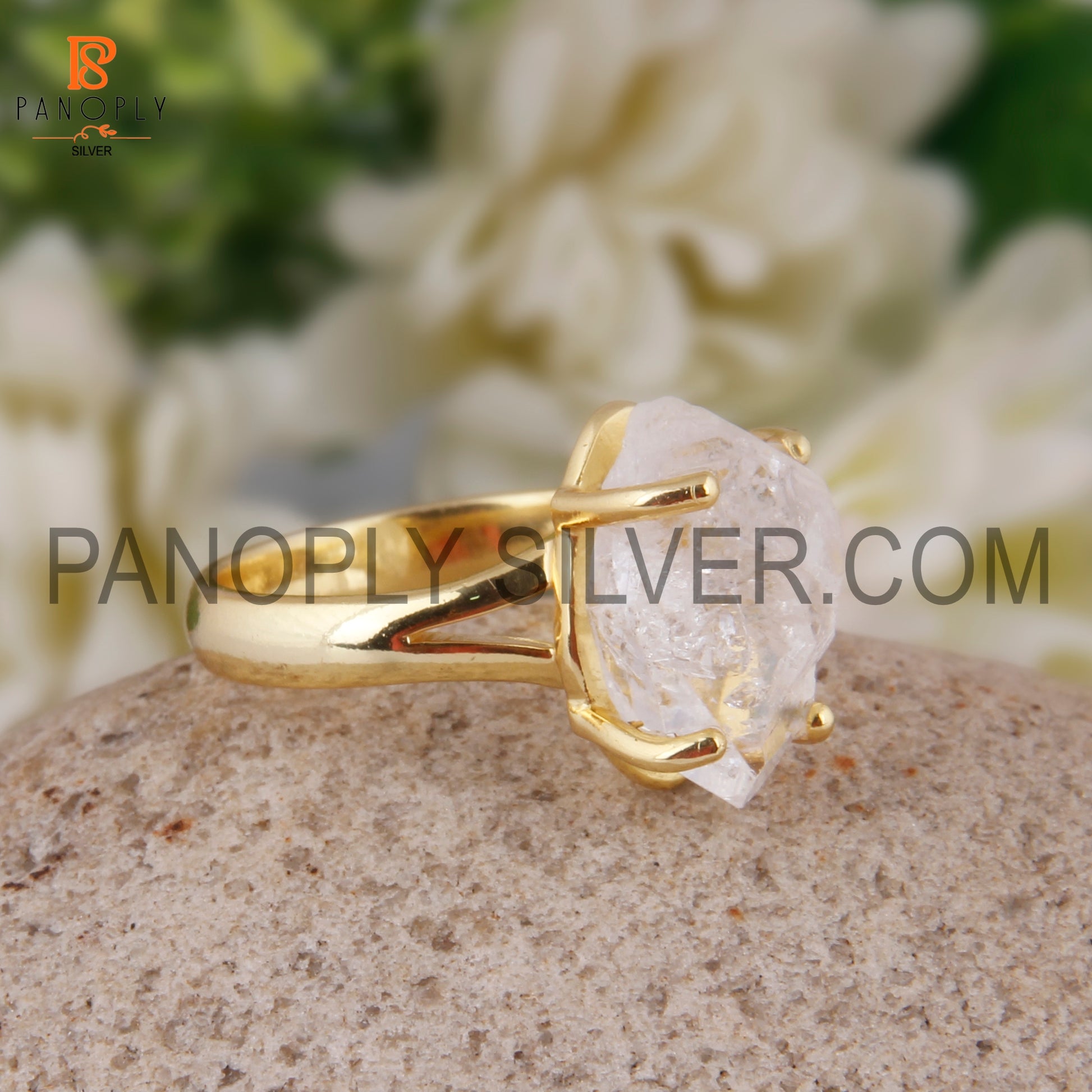 Raw Herkimer Diamond Gold Plated Sterling Silver Rings