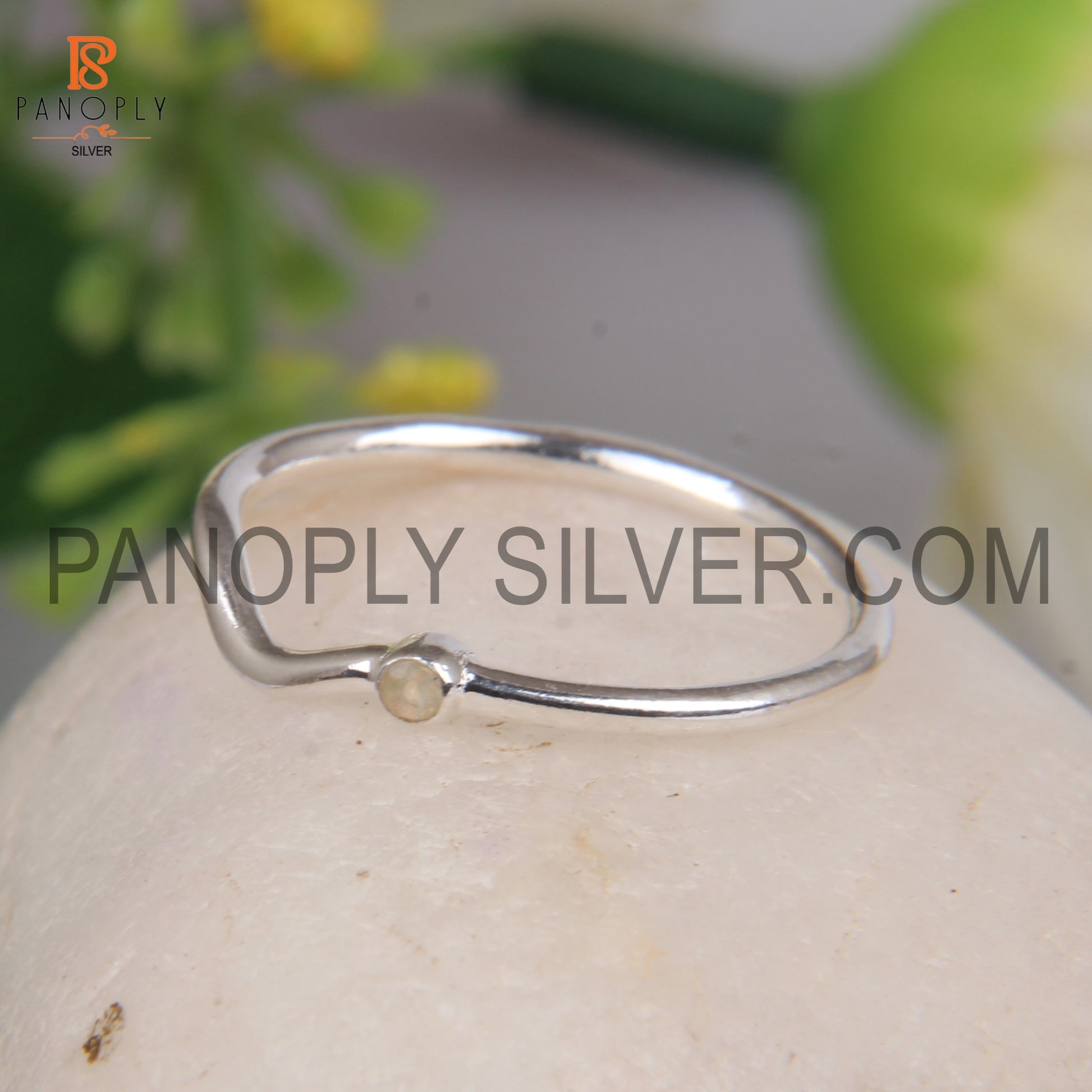 Silver Gold Plated Thin Wave Band Ring With Ethiopian Opal Stone Ring