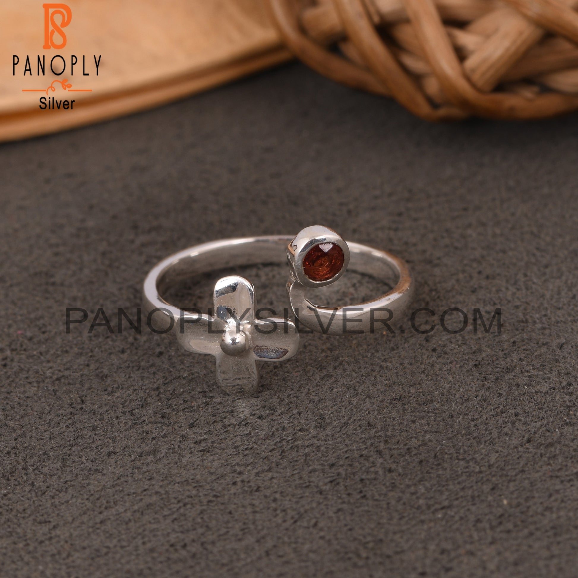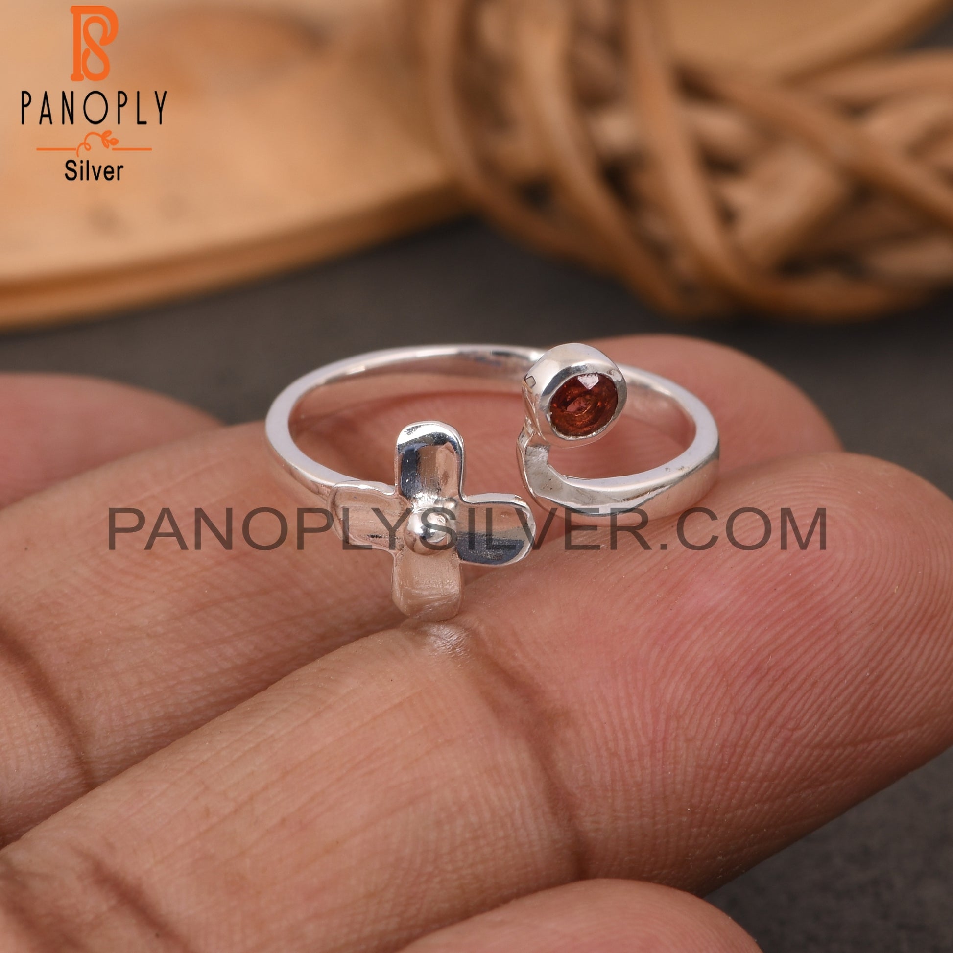 Small Flower 925 Sterling Silver Garnet Silver Rings