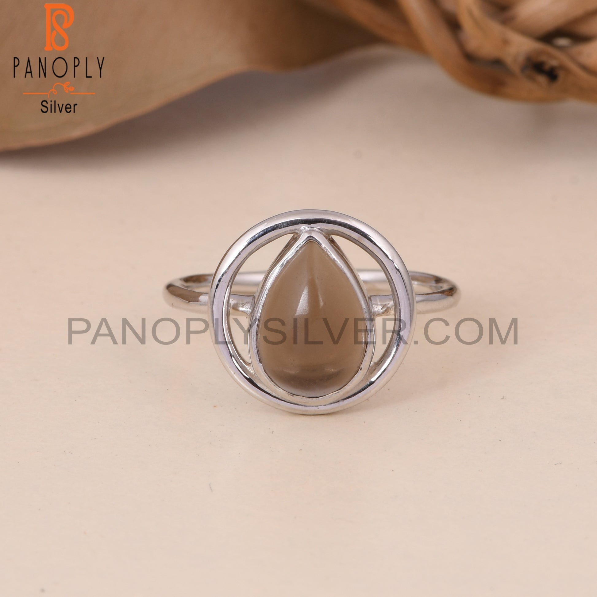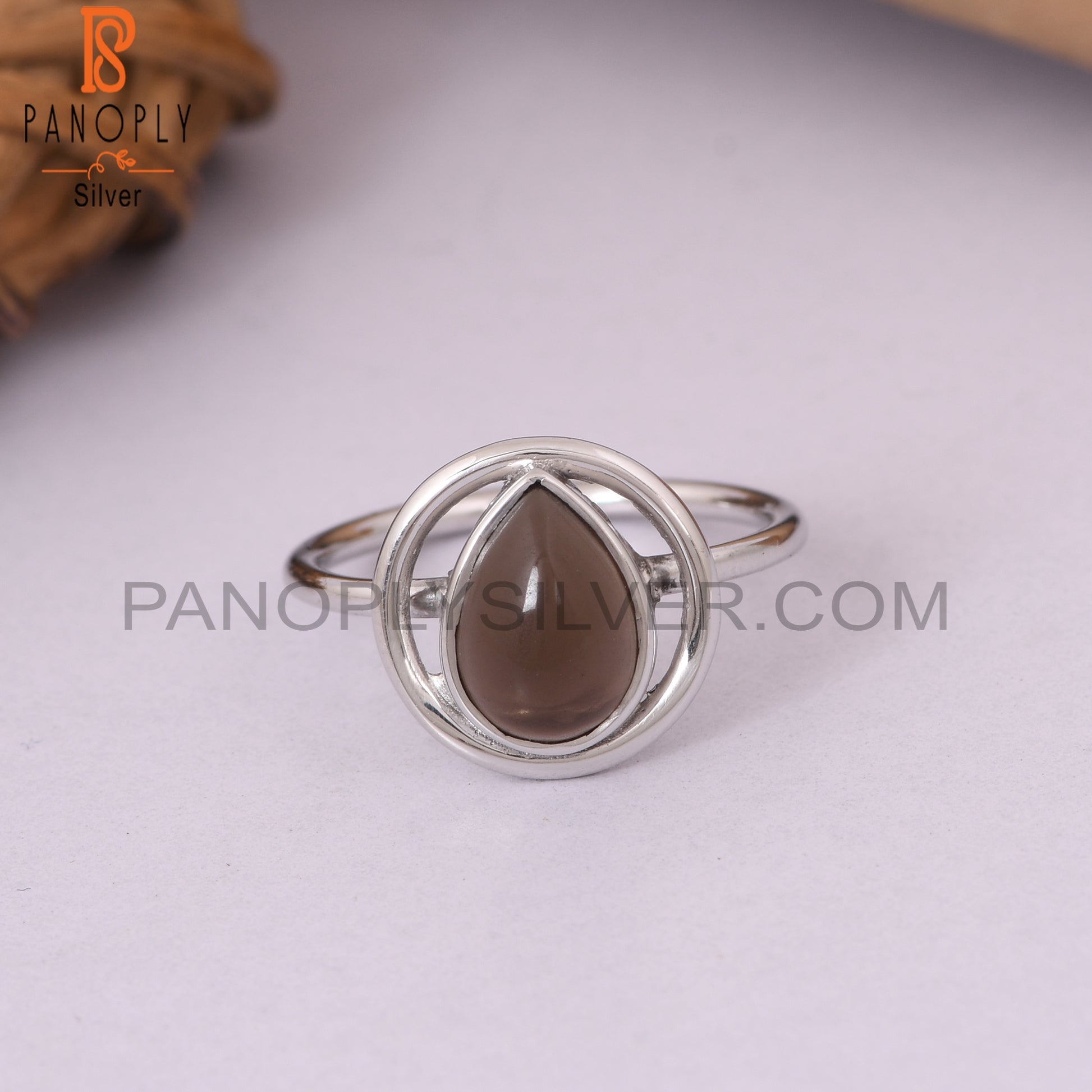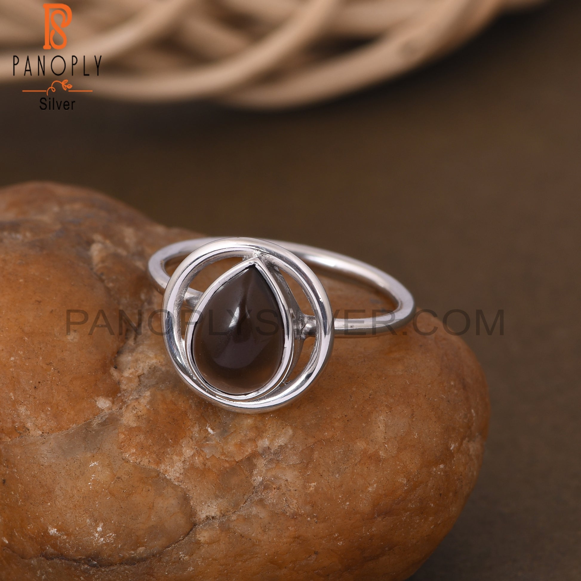 Smoky Quartz Gem 925 Silver Handmade Pear Ring