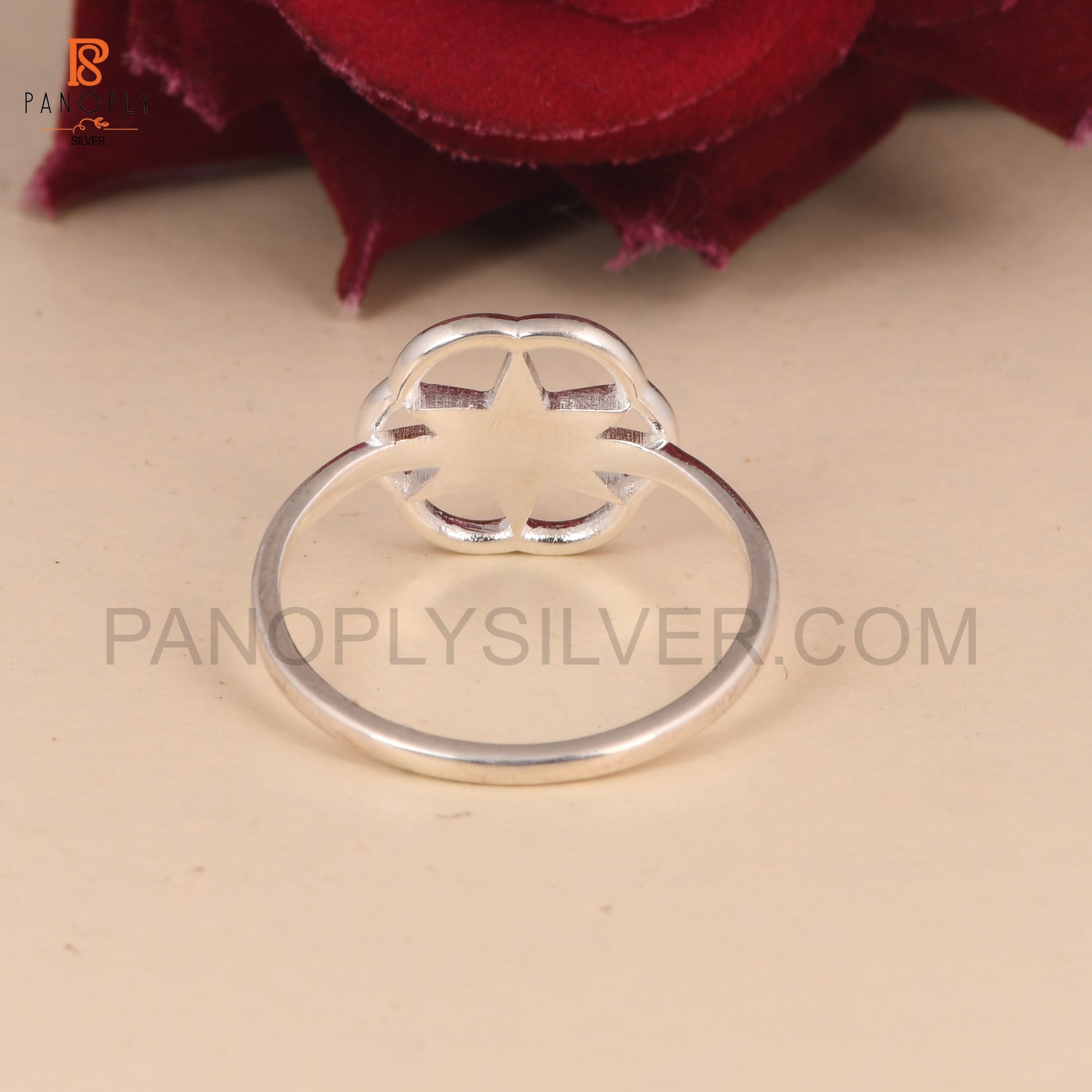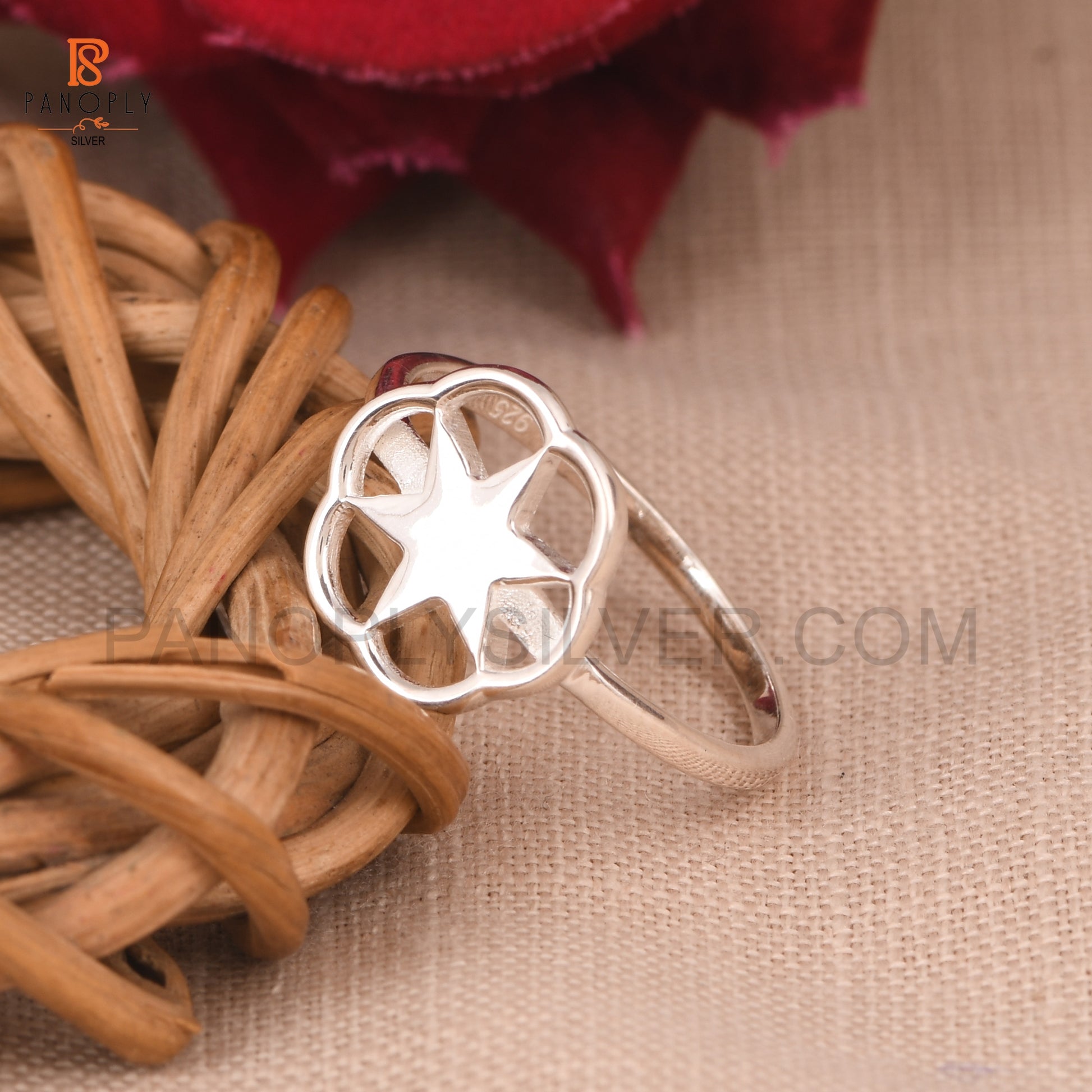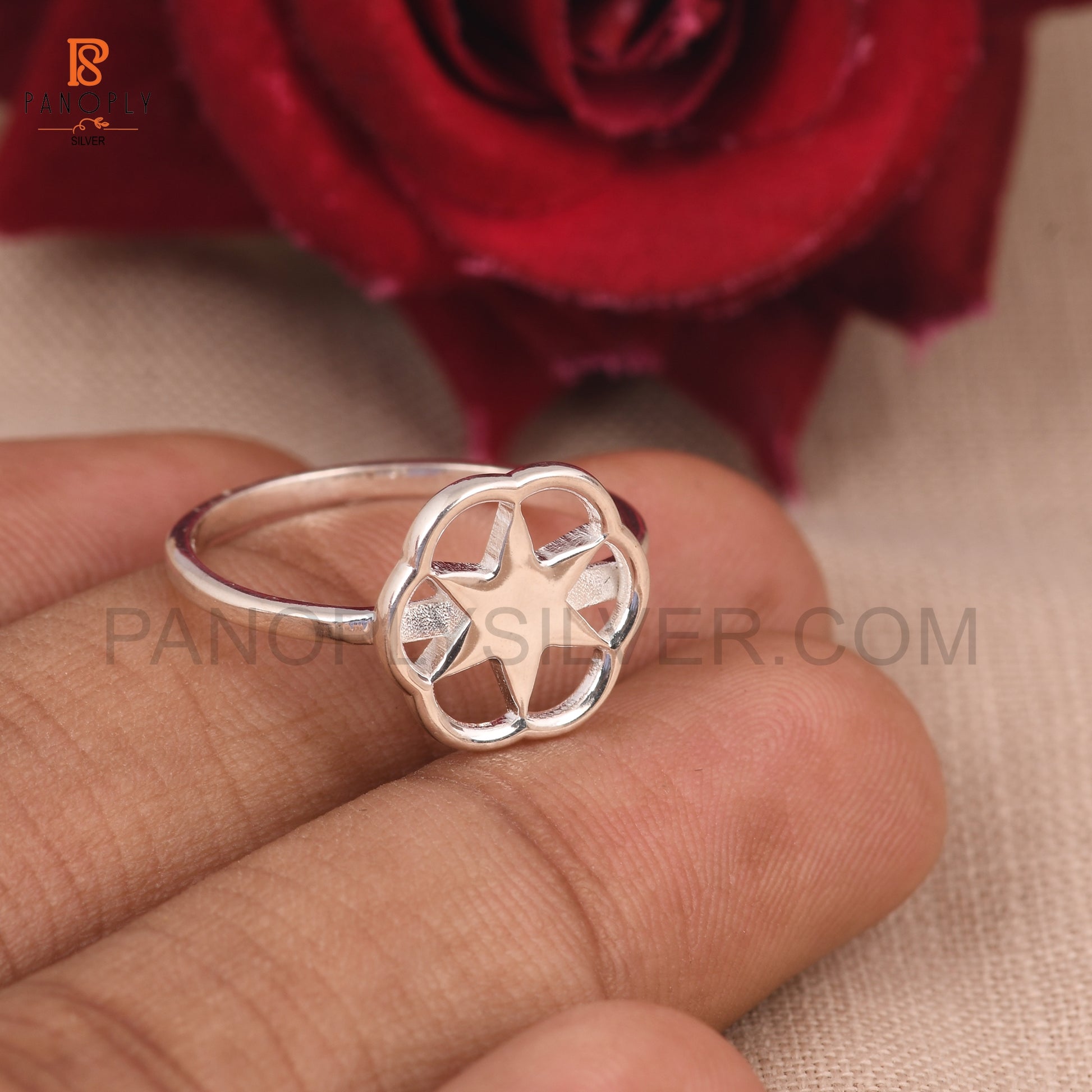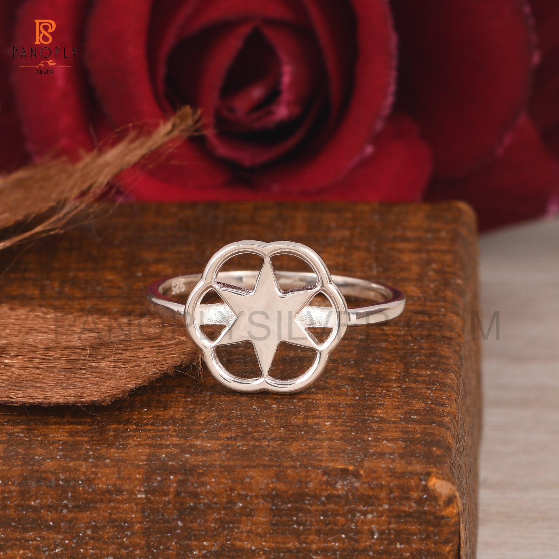 Silver Star Ring with Flower Design, Dainty Statement Ring