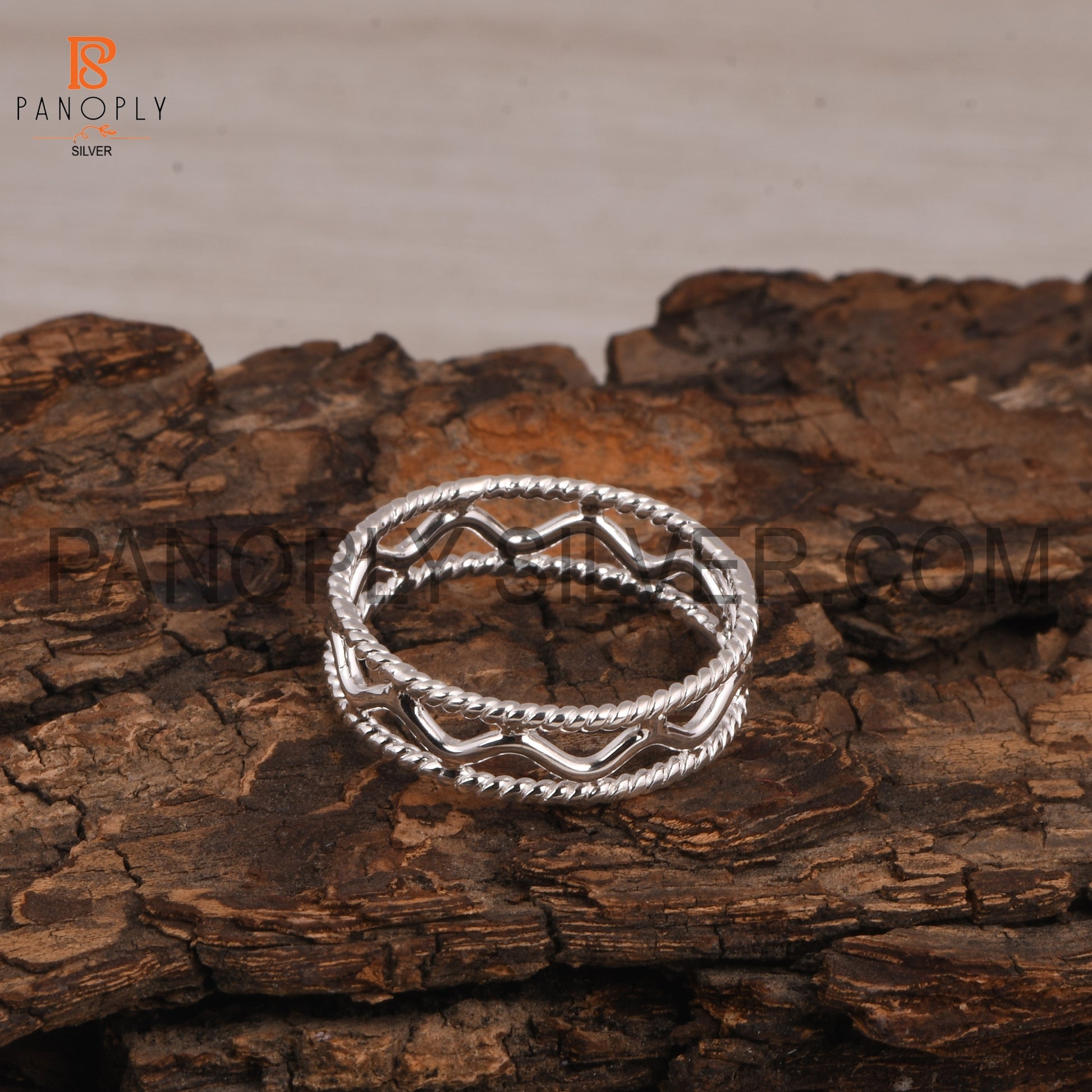 925 Sterling Silver Minimal Zig Zag Band Rings